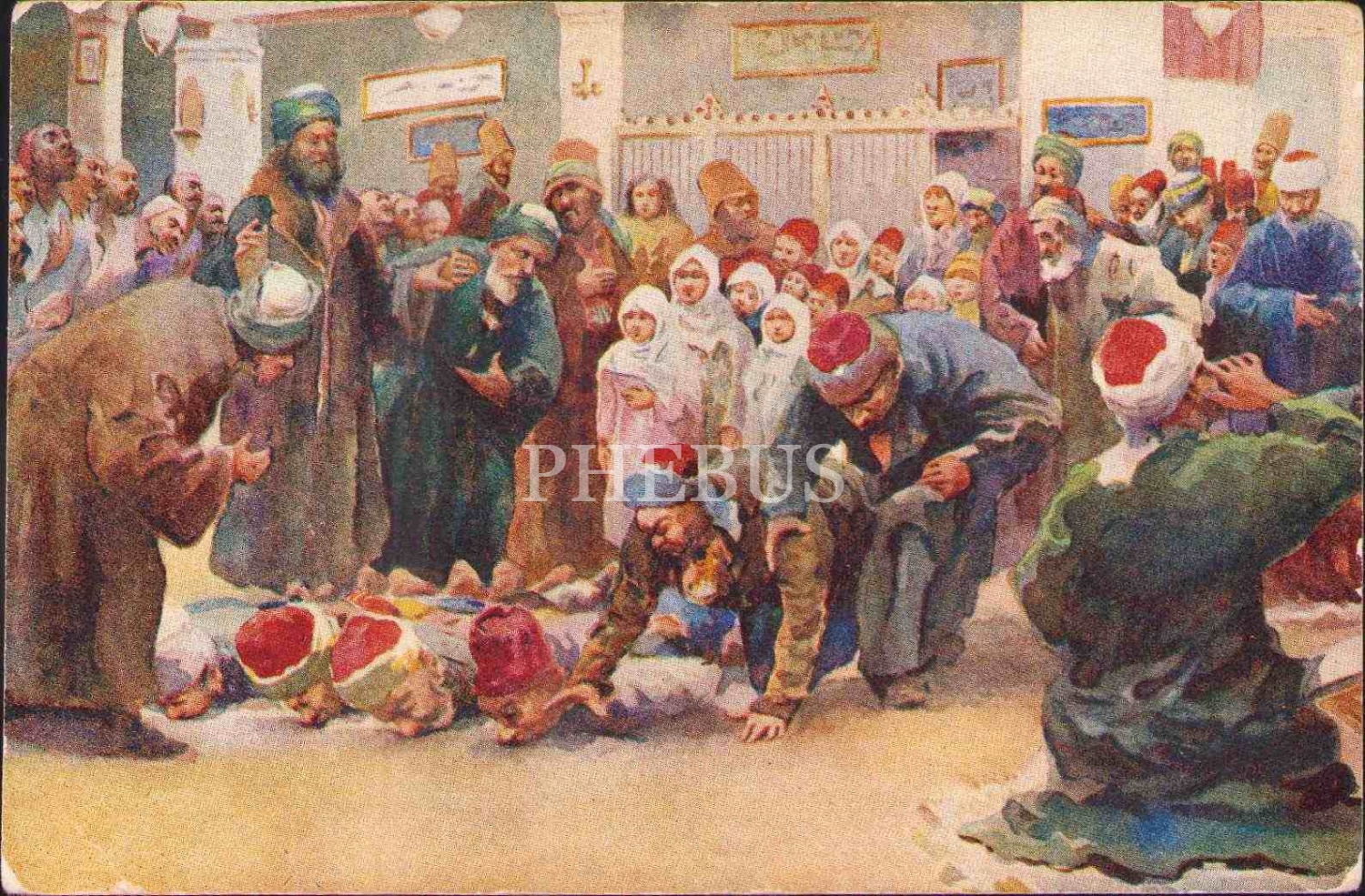 Üsküdar´da dervişler, Constantinople, E.F. Rochat, alt köşesi kırık haliyle