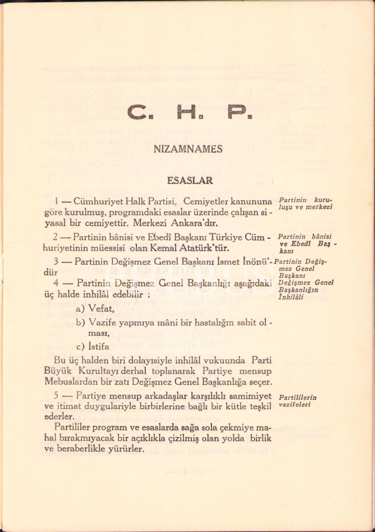 CHP Nizamnamesi, Ulus Basımevi, Ankara 1939, 41 s., 16x23 cm