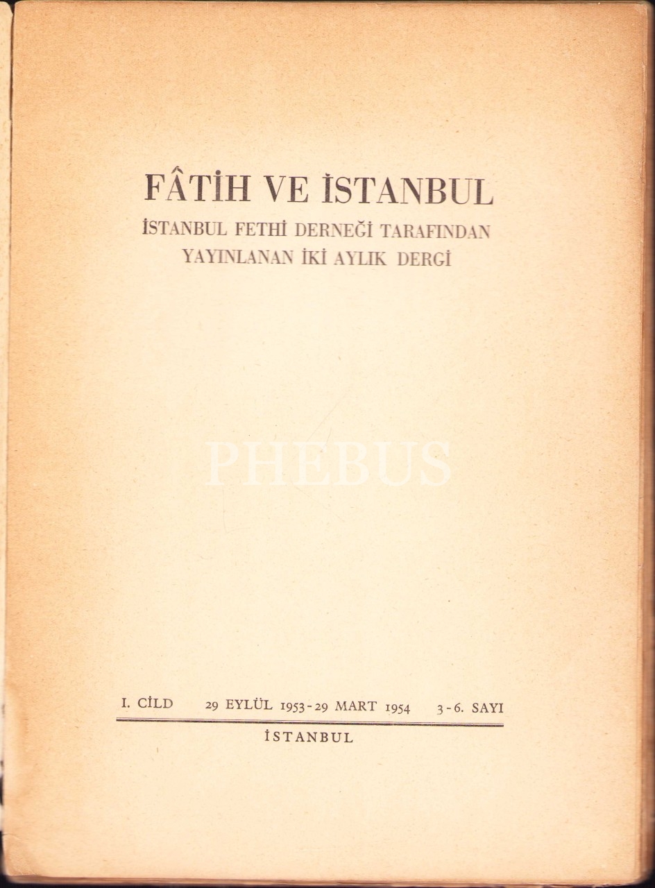 FATİH VE İSTANBUL -1.CİLD 29 EYLÜL 1953 - 29 MART 1954 - 3-6.Sayı, Kanat ve Feyz Matbaaları, 359 Sayfa, 21x29cm.