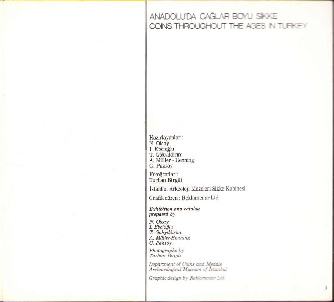 ANADOLU´DA ÇAĞLAR BOYU SİKKE SERGİ KATALOĞU, 1983, 26 Sayfa, 22x24cm.