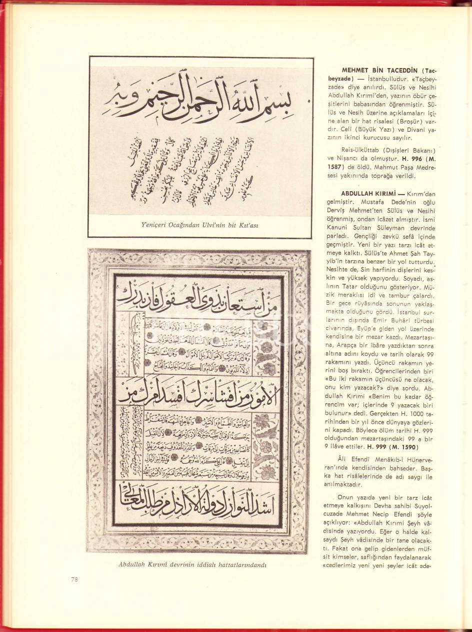 XV. yüzyıldan günümüze kadar gelmiş ünlü hattatların hayatları ve yazılarından örnekler