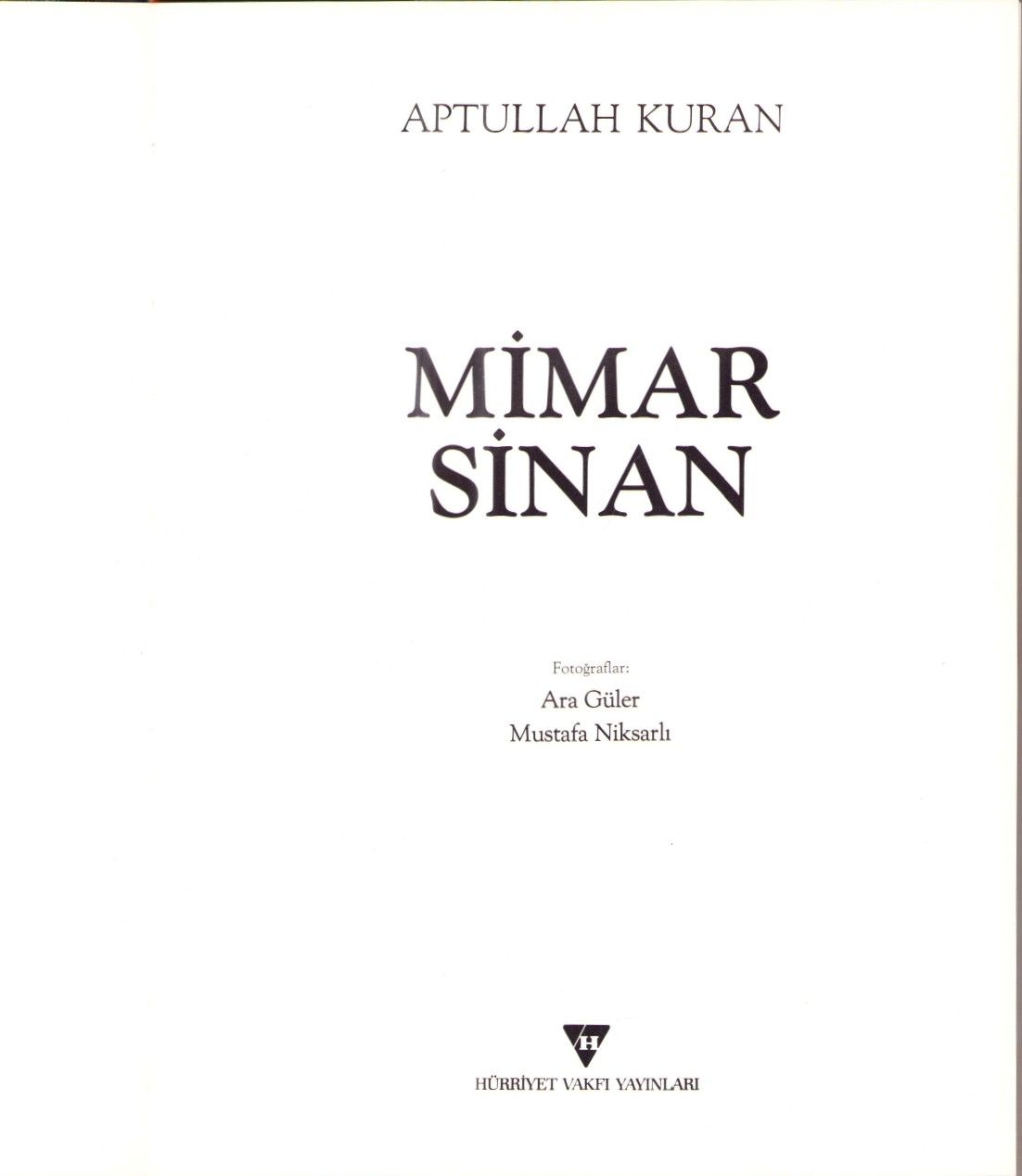 MİMAR SİNAN, Aptullah Kuran, 1986, Hürriyet Vakfı Yayınları, 23,5x32cm.