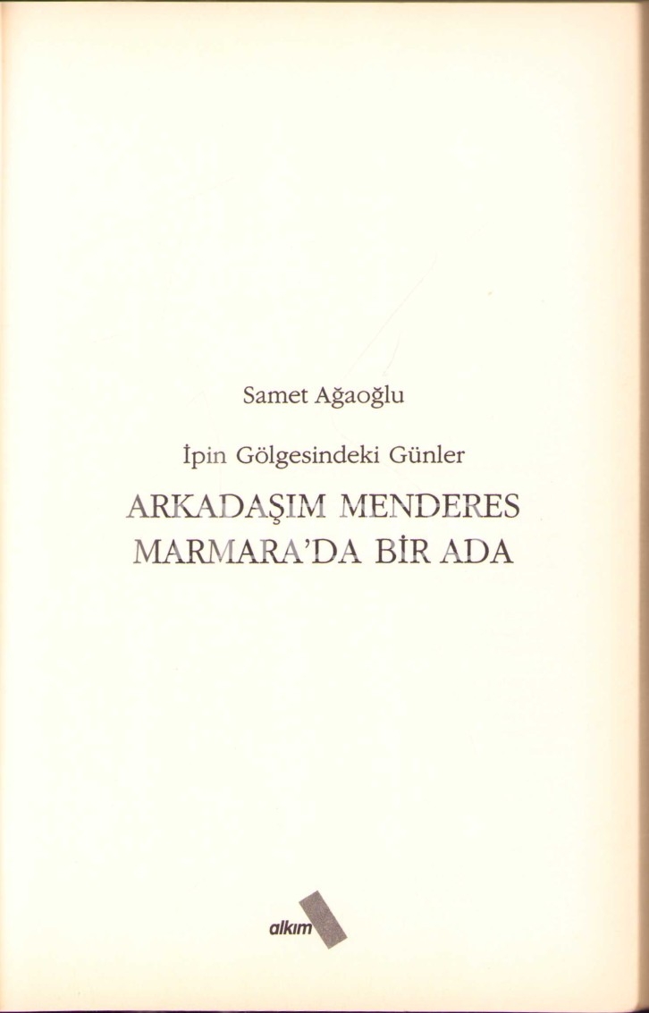 ARKADAŞIM MENDERES - İPİN GÖLGESİNDEKİ GÜNLER, Samet Ağaoğlu, 2004, 453 Sayfa, Alkım Yayınevi, 13,5x19,5cm.
