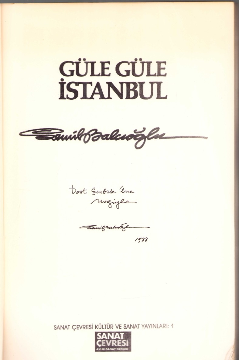 GÜLE GÜLE İSTANBUL, Semih Balcıoğlu, 1985, Sanat Çevresi Kültür ve Sanat Yayınları, 27x40cm. Kapağı kopuk haliyle. Sanatçıdan ithaflı ve imzalı...