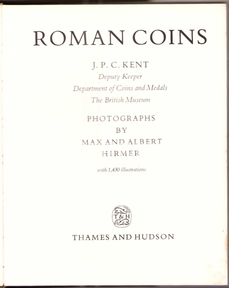 ROMAN COINS with 1430 illustrations, J.P.C. Keny, 1978, Thames and Hudson Ltd., 368 Sayfa, 25x32cm.