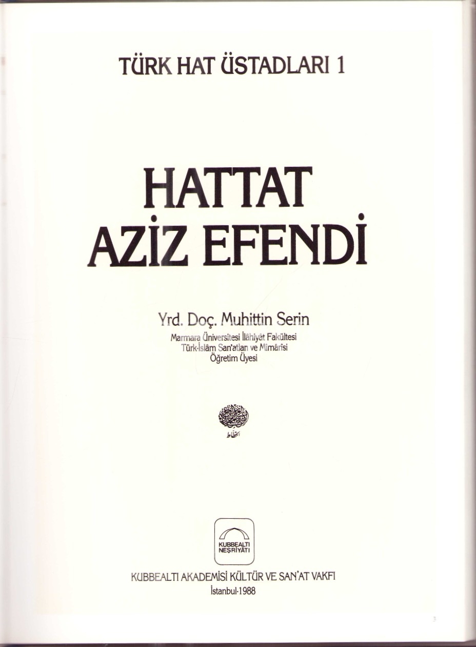 HATTAT AZİZ EFENDİ - TÜRK HAT ÜSTADLARI 1, Yrd. Doç. Muhittin Serin, 1988, Kubbealtı Neşriyat, 119 Sayfa, 23,5x32,5cm.