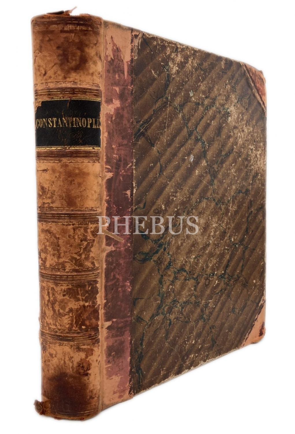 Deri sırtlı ve ebru desenli cildinde CONSTANTINOPLE AND IT’S ENVIRONS/THE SCENERY OF THE SEVEN CHURCHES OF ASIA MINOR, Robert Walsh, 1. ve 2. cilt tek kitapta [84+95 sayfa], 21x27 cm