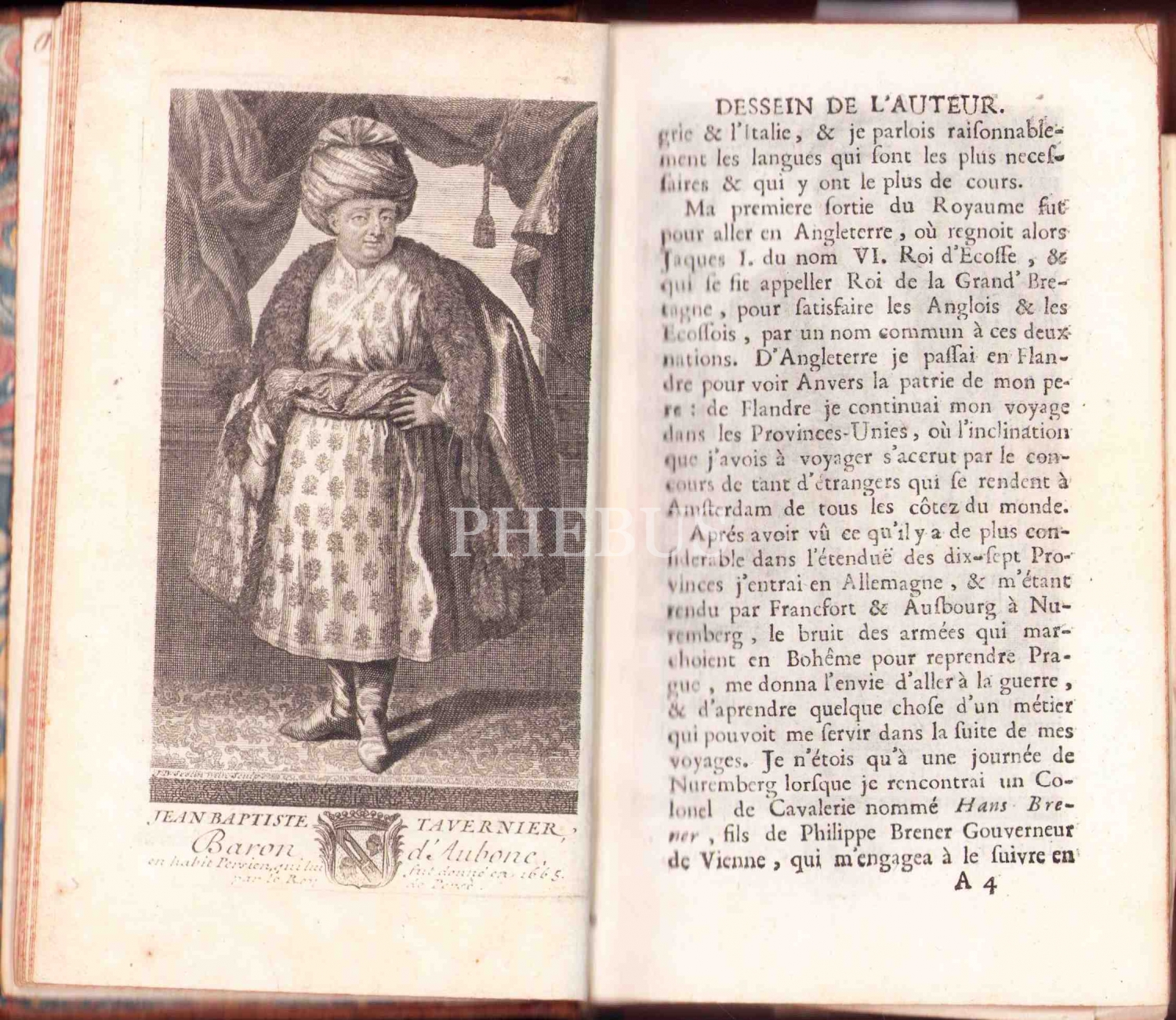 doğrudan gözlemleriyle takviye ederek bu eseri kaleme almıştır. Tavernier’ın bu eseri, Osmanlı İmparatorluğunun duraklama devri olan 17. yüzyılda, imparatorluk yaşamını ve saray düzenini bir batılı gözüyle ortaya koyması bakımından büyük önem taşımaktadır. Özellikle Topkapı Sarayı hakkında verilen bilgiler kitaba bir belge niteliği kazandırmaktadır. Birçoğu katlanır 54 gravür içeren eserin tamamı deri cildindedir, iç kapakları ebru desenlidir ve oldukça temiz durumdadır.