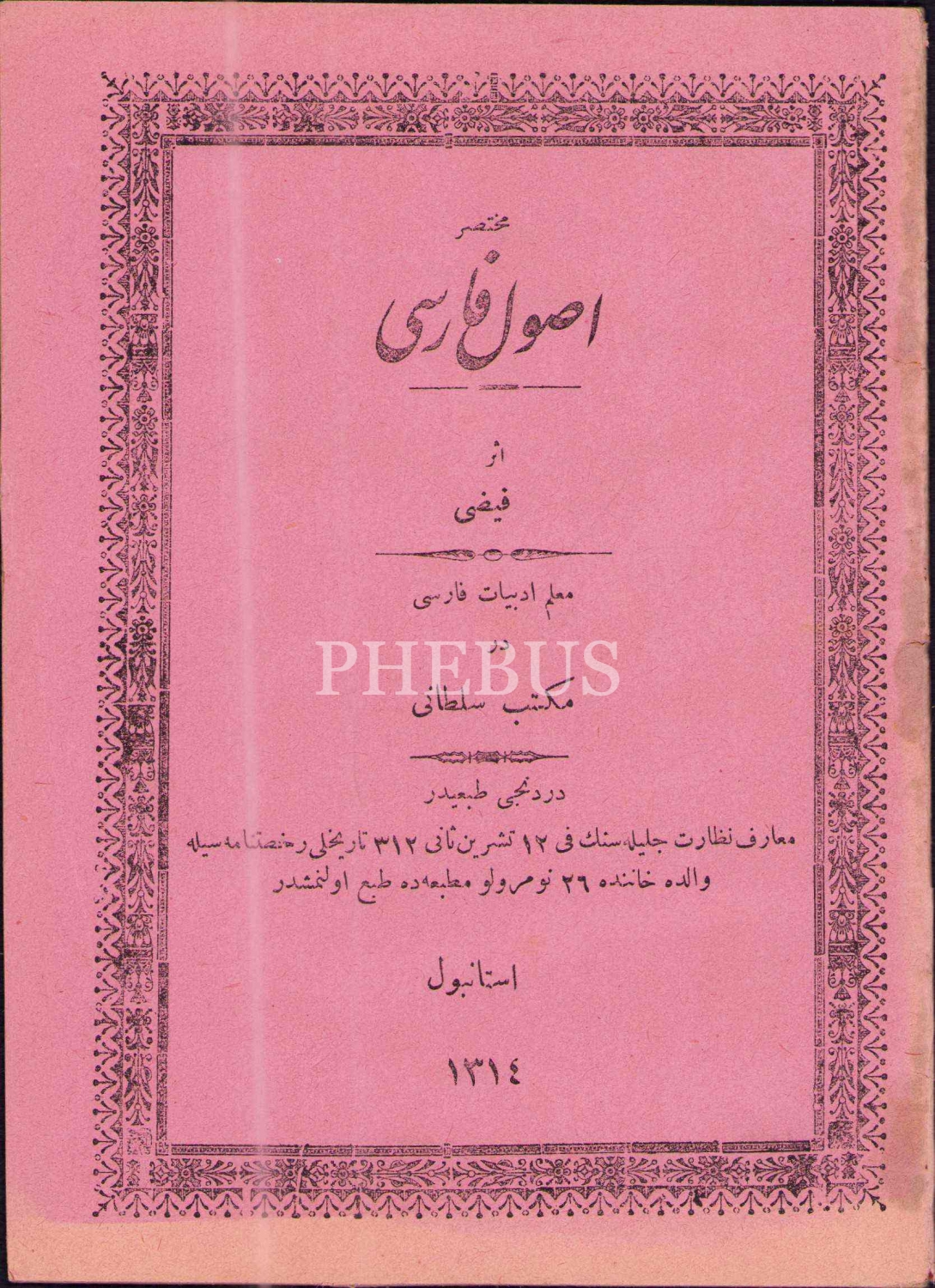 MUHTASAR USÛL-İ FÂRSÎ [Farsça Dilbilgisi], Feyzi, Mehdi Efendi Matbaası, İstanbul 1314, 46 s., 14x19 cm