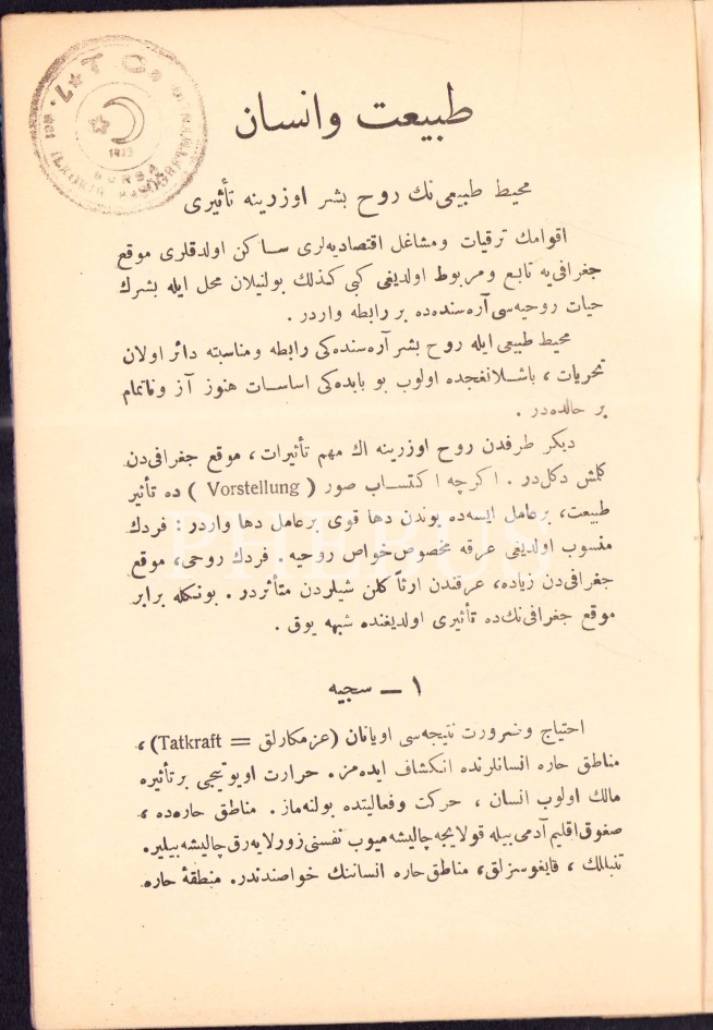 TABÎAT VE İNSÂN, Max George Schimidt, Almancadan çev. Mustafa Rahmi, Amire Matbaası, İstanbul 1341, 24 s., 14x20 cm