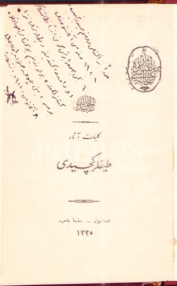 TAYFLAR GEÇİDİ, Abdülhak Hamid [Tarhan], ithaflı ve imzalı, Amire Matbaası, İstanbul 1335, 114 s., 13x19 cm