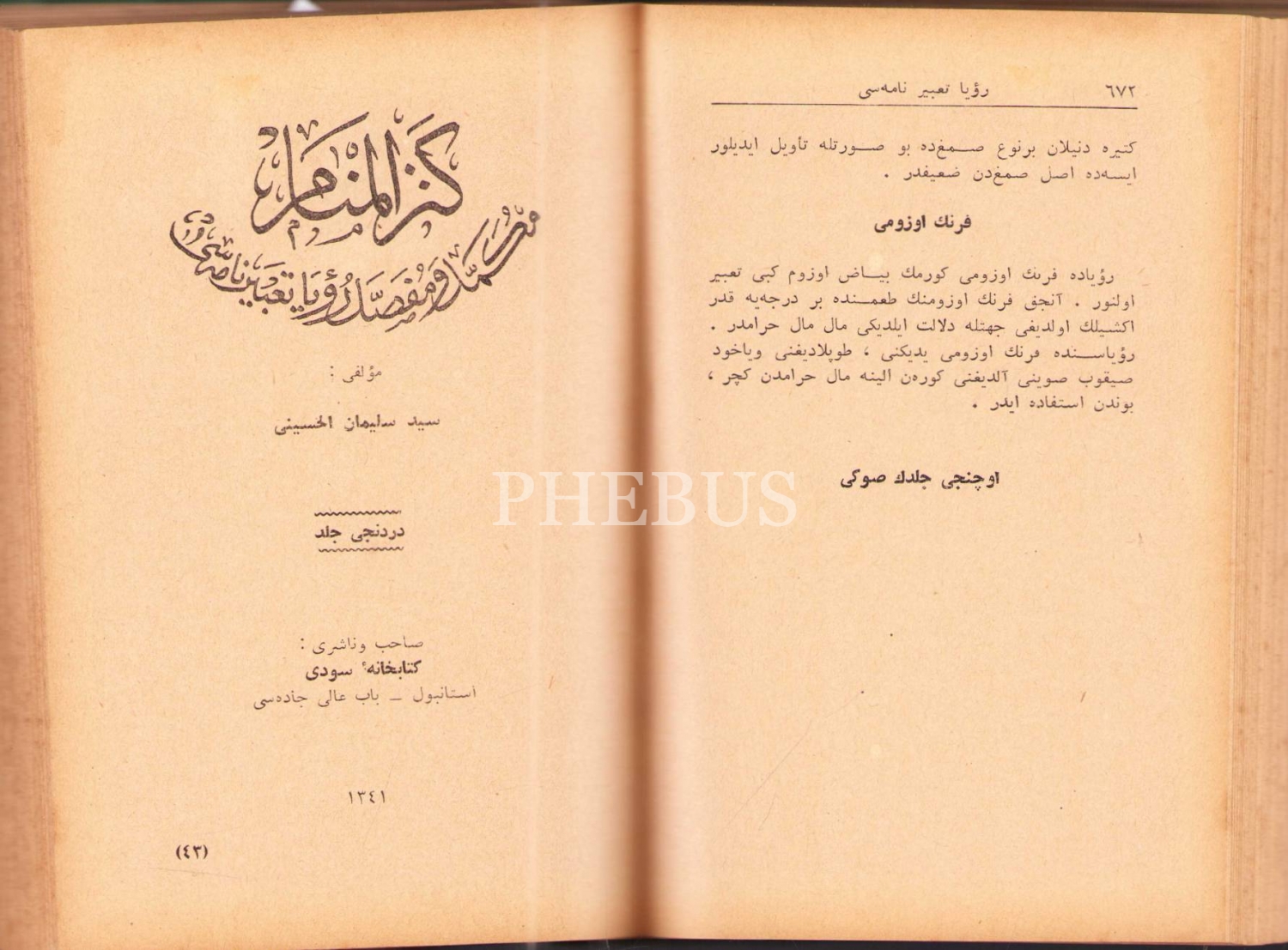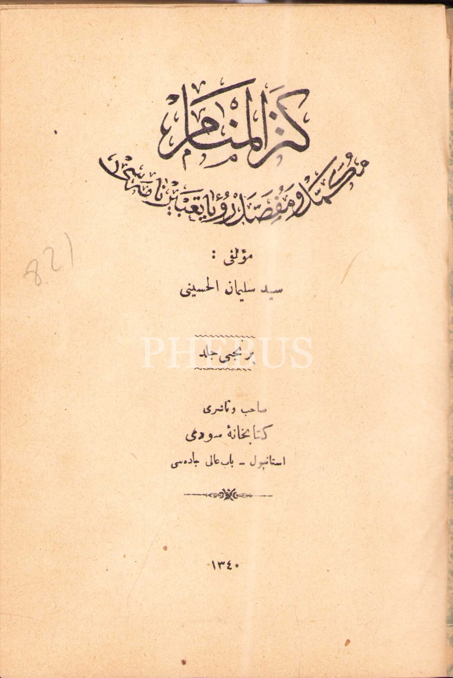 KENZÜ´L-MENÂM [5 Cilt], Seyyid Süleyman el-Haseni, İstanbul 1339-41, 1048 s., 14x20 cm
