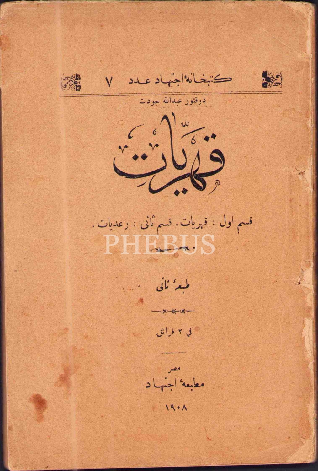 KAHRİYYÂT, Dr. Abdullah Cevdet, İctihad Matbaası, Mısır 1908, 128 s., 12x19 cm