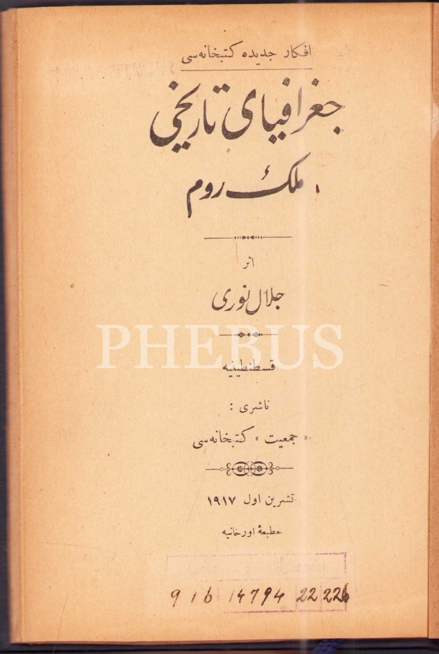 COĞRAFYA-YI TÂRÎHÎ-İ MÜLK-İ RUM, Celal Nuri [İleri], Orhaniye Matbaası, Kostantiniyye 1917, 94 s., 14x20 cm