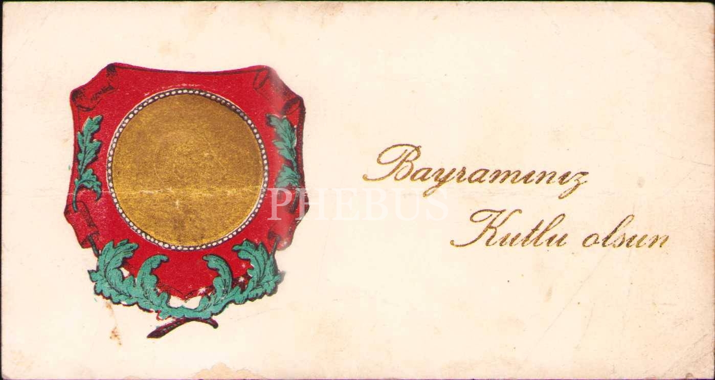 İsmet İnönü gofre bayram tebrik kartı, 6x12 cm, ortadan kırık haliyle