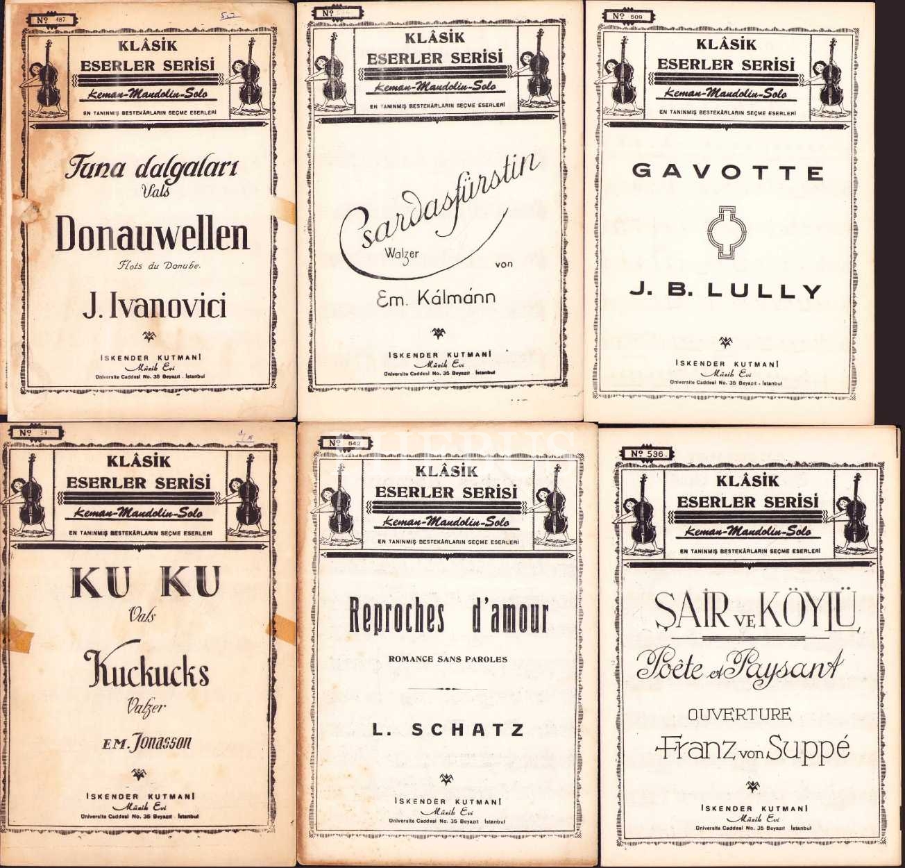 Müzik tarihi: İskender Kutmani Müzik Evi Klâsik Eserler Serisi´nden 6 adet nota, 17x25 cm