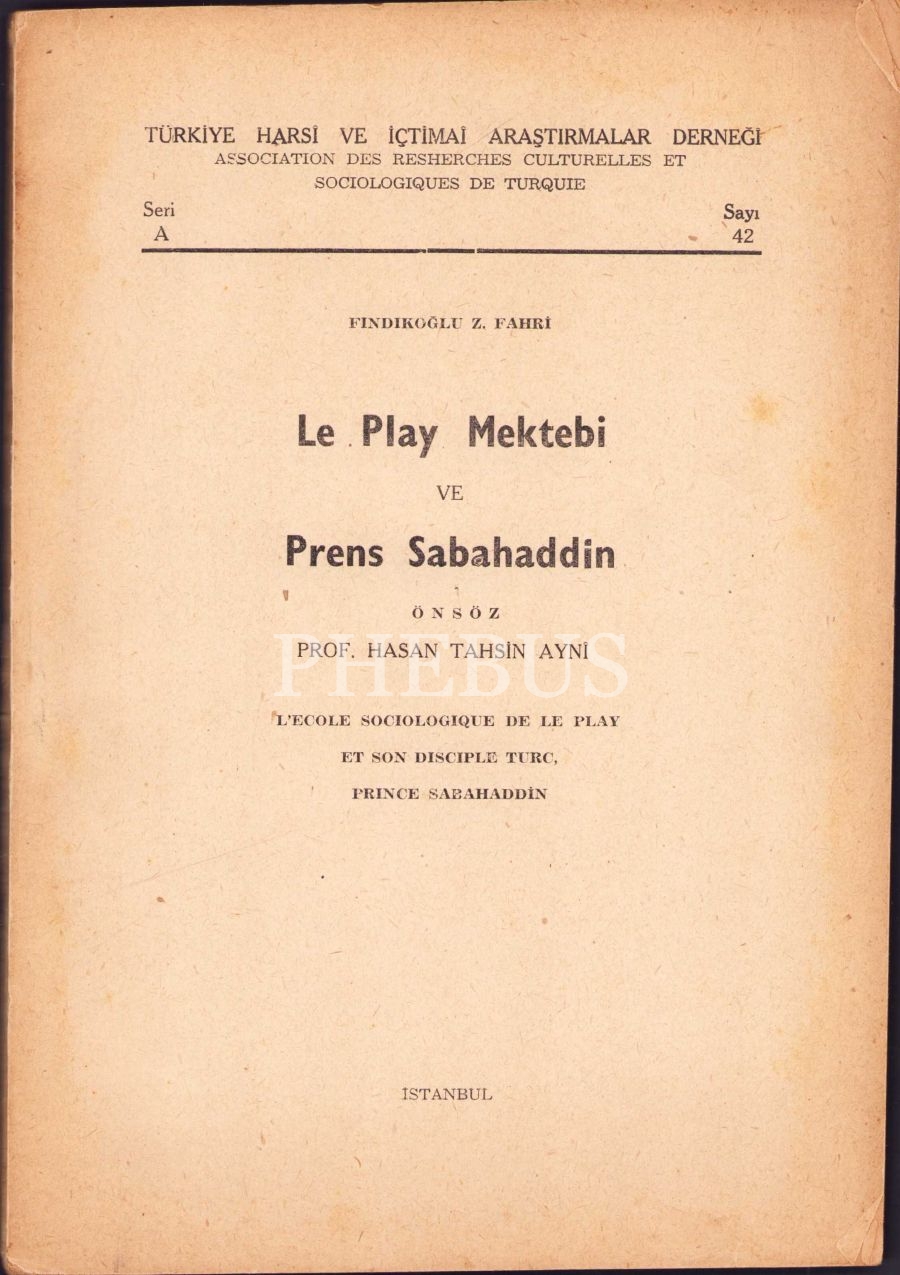 LE PLAY MEKTEBİ VE PRENS SABAHADDİN, Ziyaeddin Fahri Fındıkoğlu, Türkiye Harsî ve İçtimaî Araştırmalar Derneği, İstanbul, 100 s., 17x24 cm
