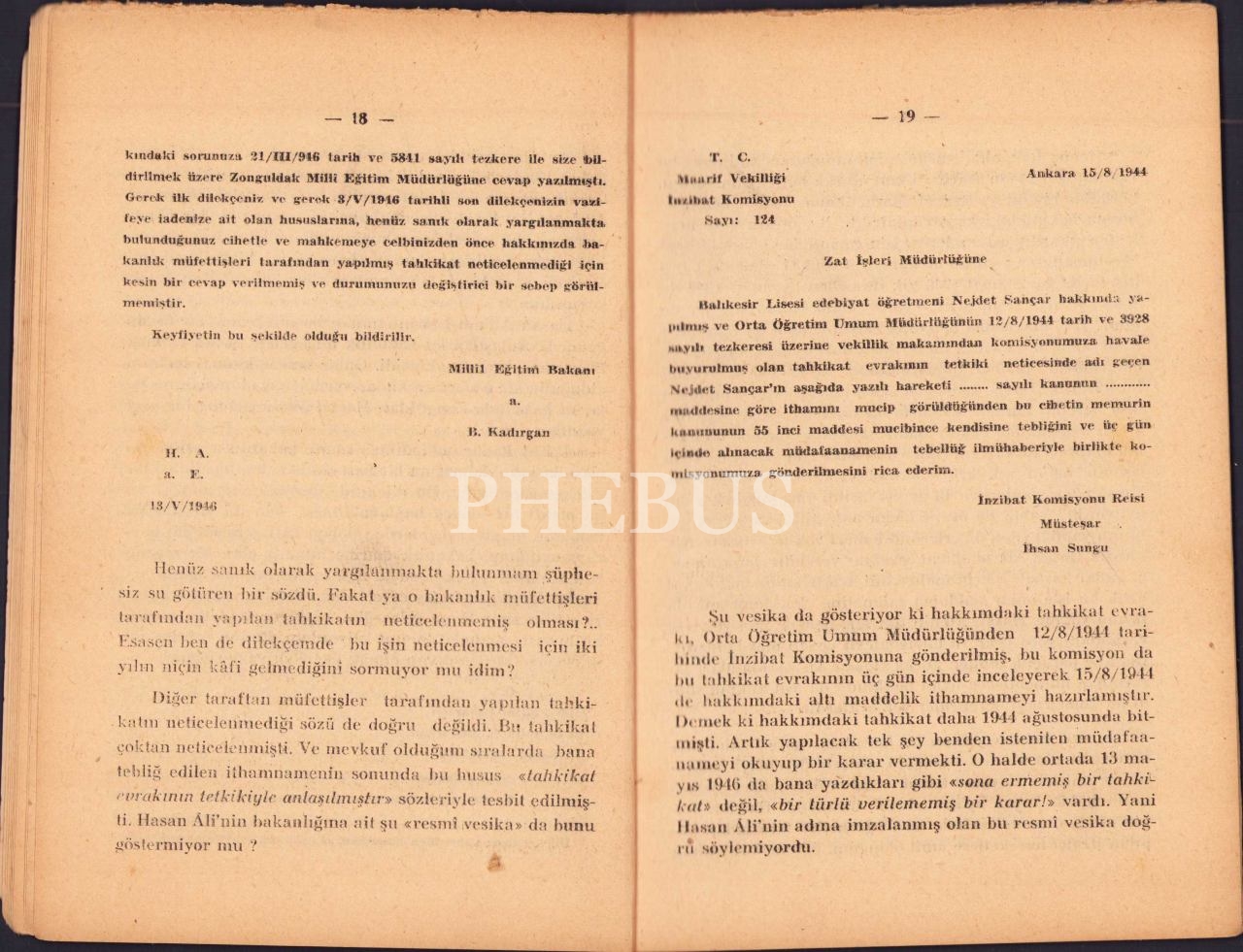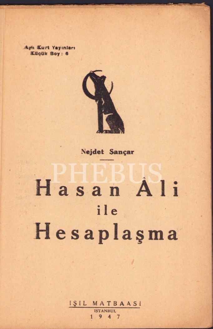 HASAN ÂLİ İLE HESAPLAŞMA, Nejdet Sançar, Işıl Matbaası, İstanbul 1947, 44 s., 14x20 cm