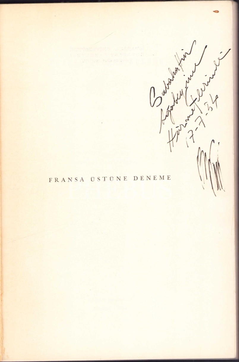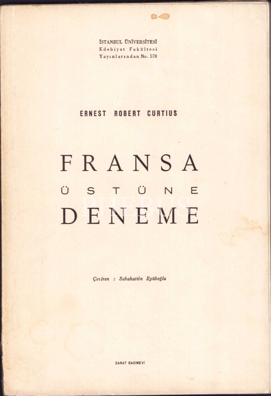 FRANSA ÜSTÜNE DENEME, Ernest-Robert Curtius, çev. Sabahattin Eyüboğlu, ithaflı ve imzalı, Sanat Basımevi, İstanbul 1953, 170 s., 17x24 cm