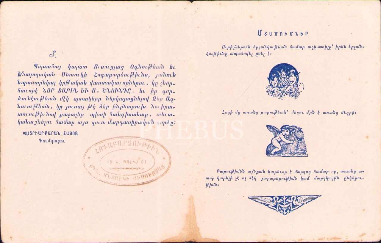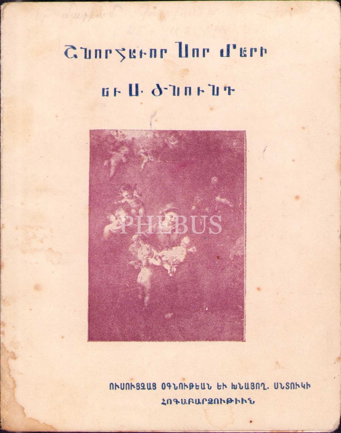 Şnorhavor Nor Dari Yev S. Dznunt - "Yeni Yılınız ve Noeliniz Kutlu Olsun" yazılı tebrik kartı.
