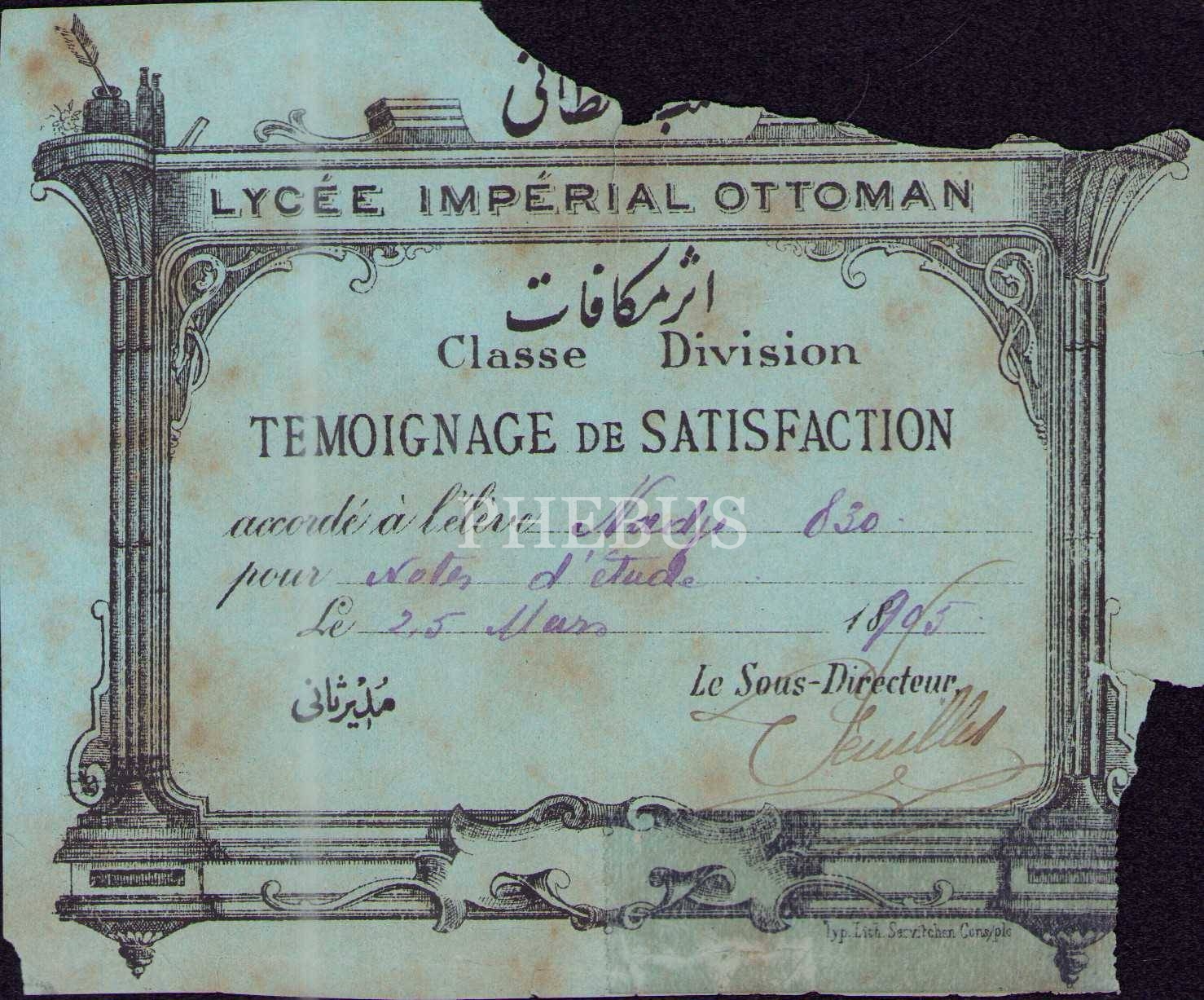 Eğitim tarihi: Mekteb-i Sultani´den 1905 tarihli mükâfat [aferin] kâğıdı, 10x12 cm