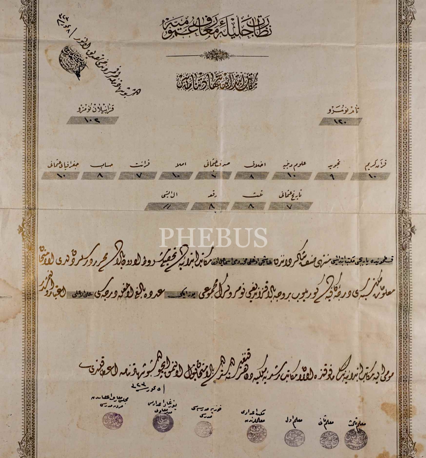 Eğitim tarihi: Kastamonu Yarıcı İlkokulu diploması, 1323 tarihli, 34x50 cm
