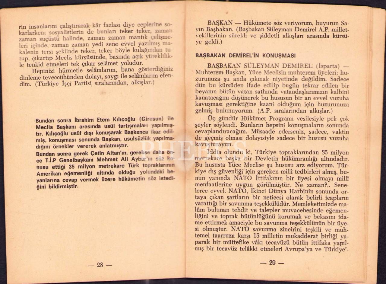"Türkiyedeki Amerikan Üsleri Hakkında Başbakanın Konuşması ve Mehmet Ali Aybarın 6 aydır cevap verilmeyen Sözlü Sorusunun metni"