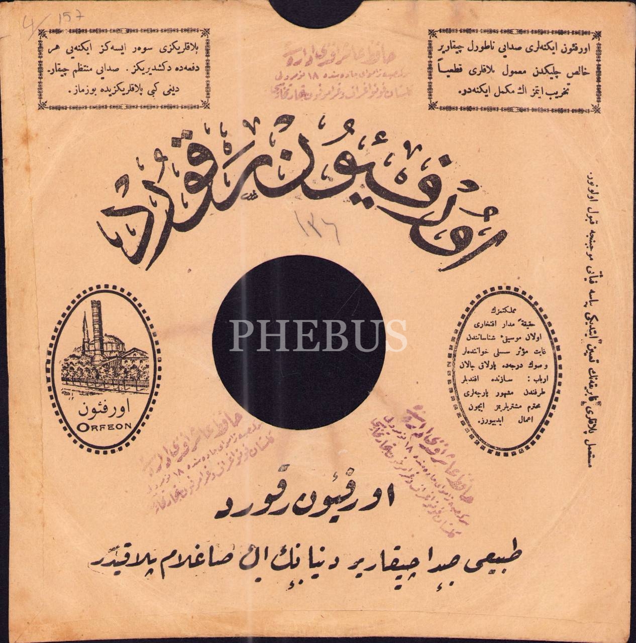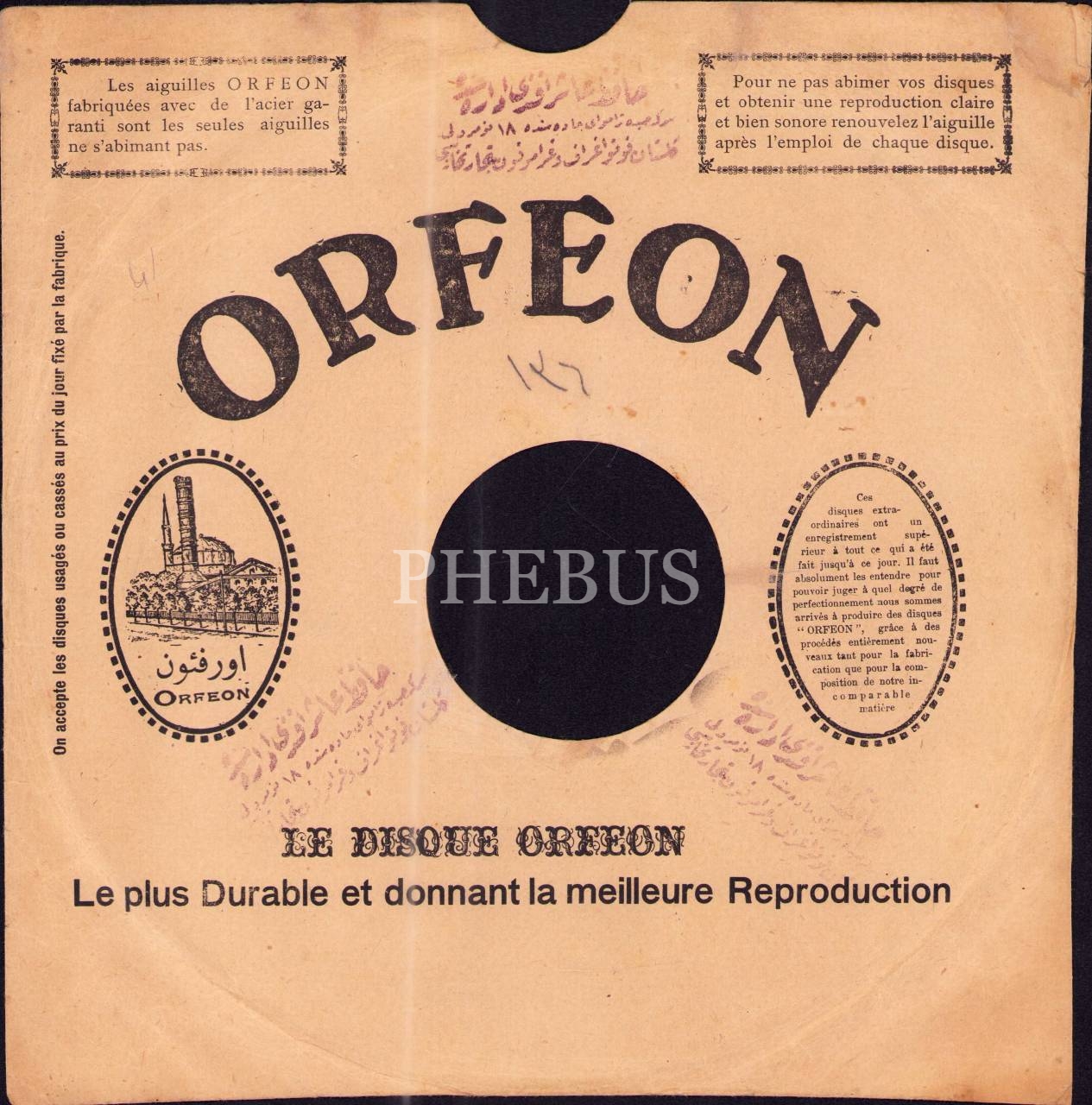 "Tabiî sada çıkarır dünyanın en sağlam plakı" Orfeon Record plak kabı, Gülistan Fonograf ve Gramofon Ticarethanesi damgalı, 27x28 cm