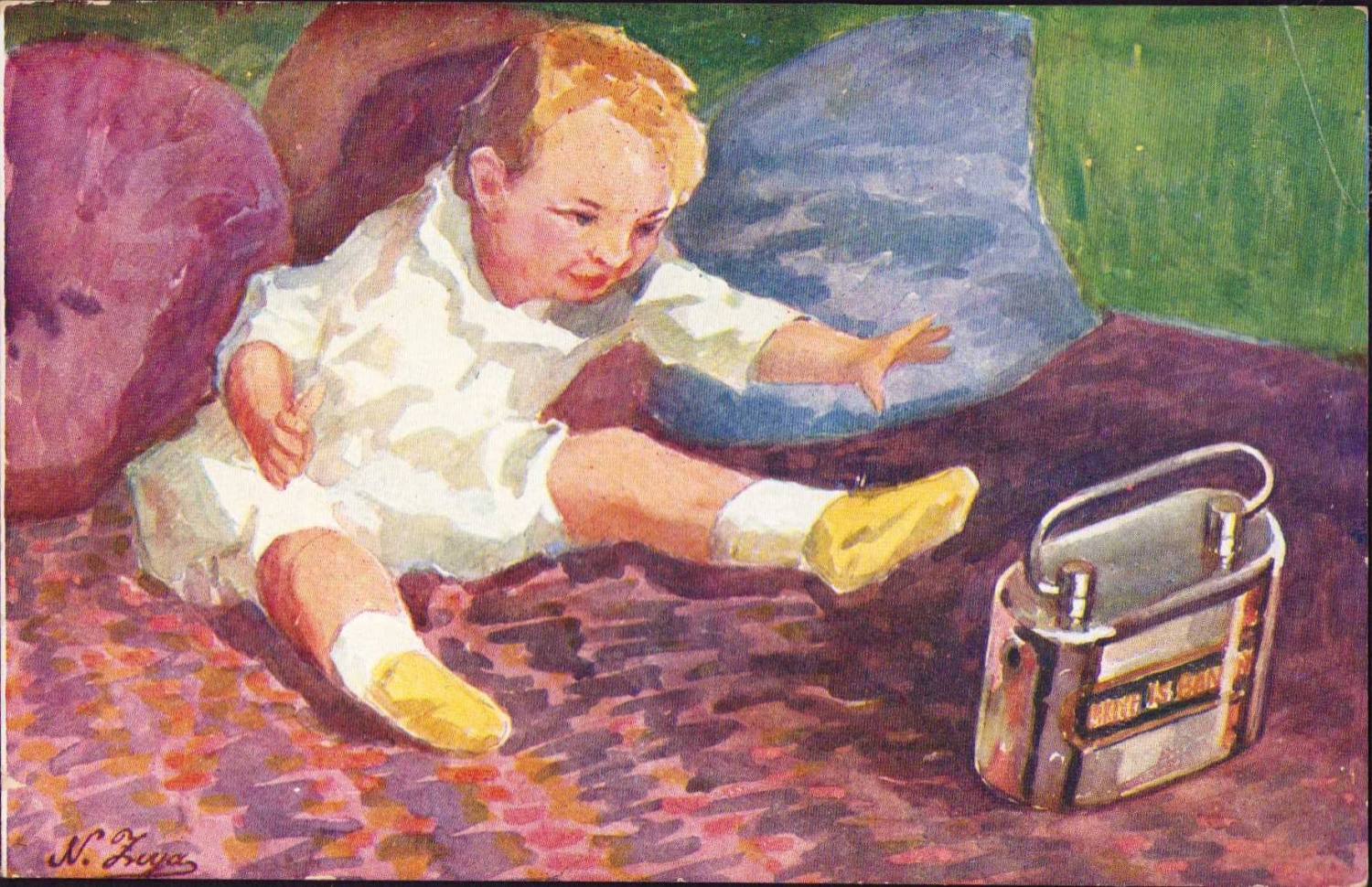 Bebek ve kumbaralı Türkiye İş Bankası kartpostalı