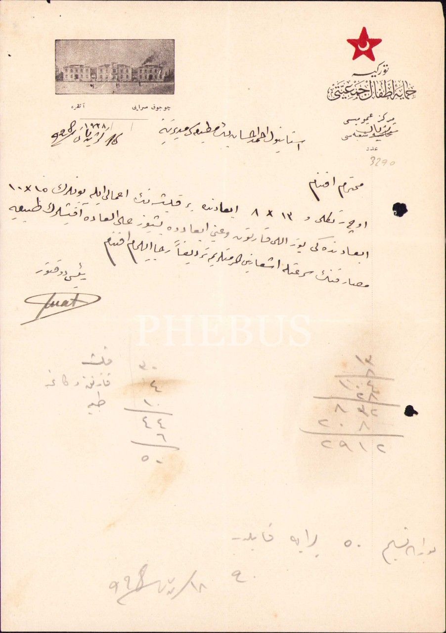 Himaye-i Etfal Cemiyeti´nden Ahmed İhsan Matbaası Müdürlüğüne gönderilen alışveriş konulu ve 1928 tarihli mektup, 17x25 cm