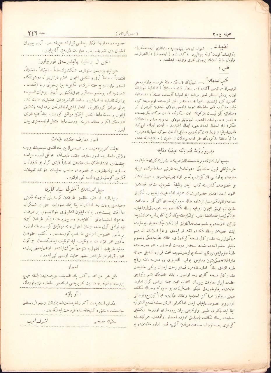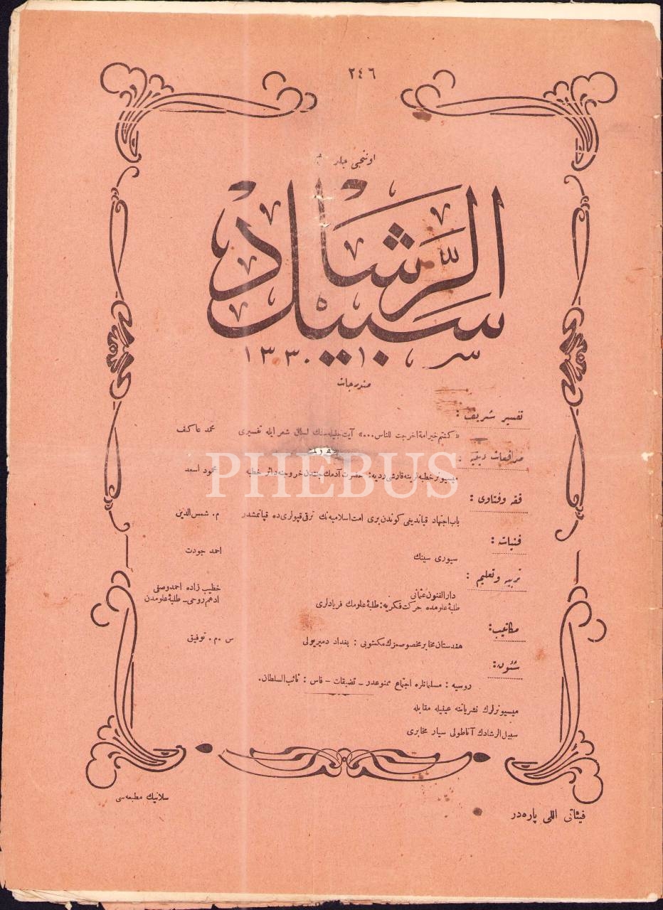 "İslami dergi" Sebilürreşad´ın 246. sayısı, 16 Mayıs 1329, 25x34 cm