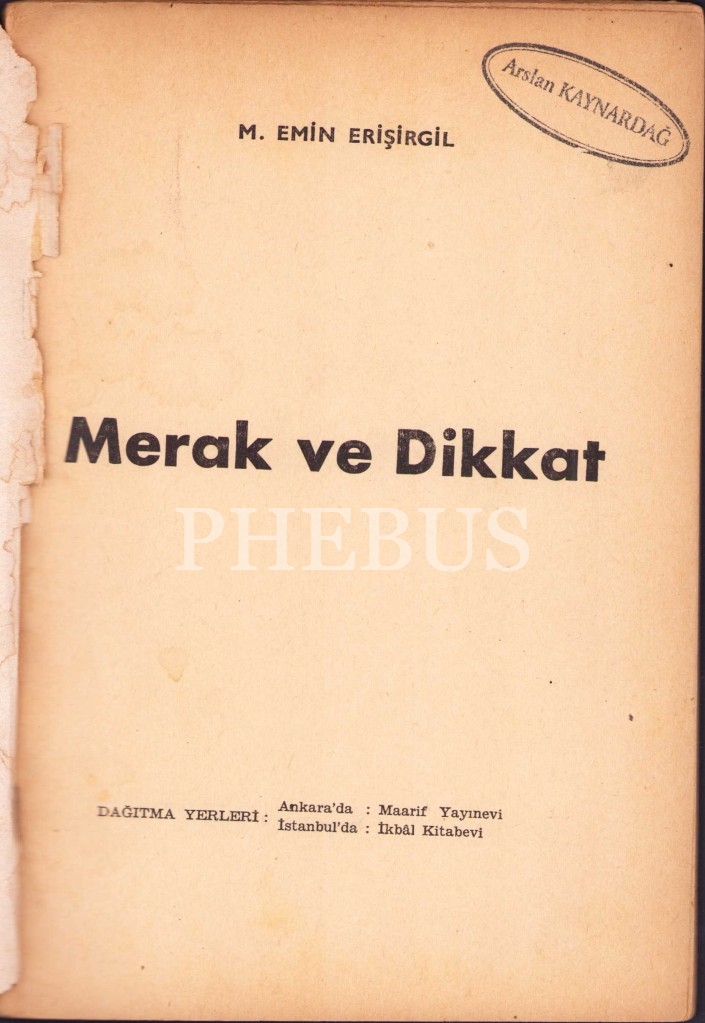 MERAK VE DİKKAT, M. Emin Erişirgil, Doğuş Ltd. O. Matbaası, Ankara 1956, 56 s., 14x20 cm, kapağı kısmen ayrık haliyle
