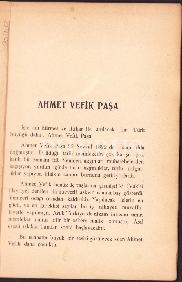 AHMET VEFİK PAŞA, İsmail Hikmet, Kanaat Kütüphanesi, İstanbul 1932, 36 s., 12x18 cm