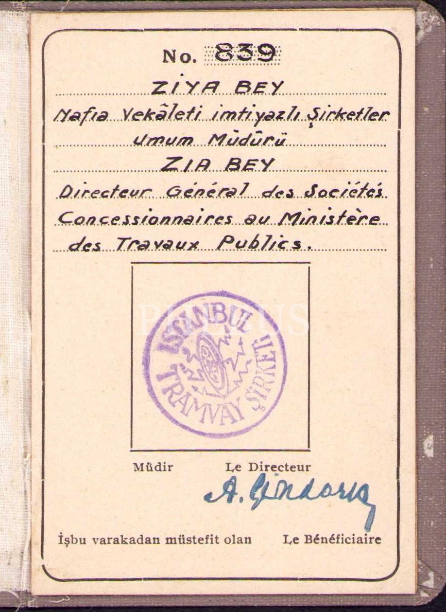 İstanbul Tramvay Şirketi hizmet varakası, 1931 tarihli, 7x10 cm