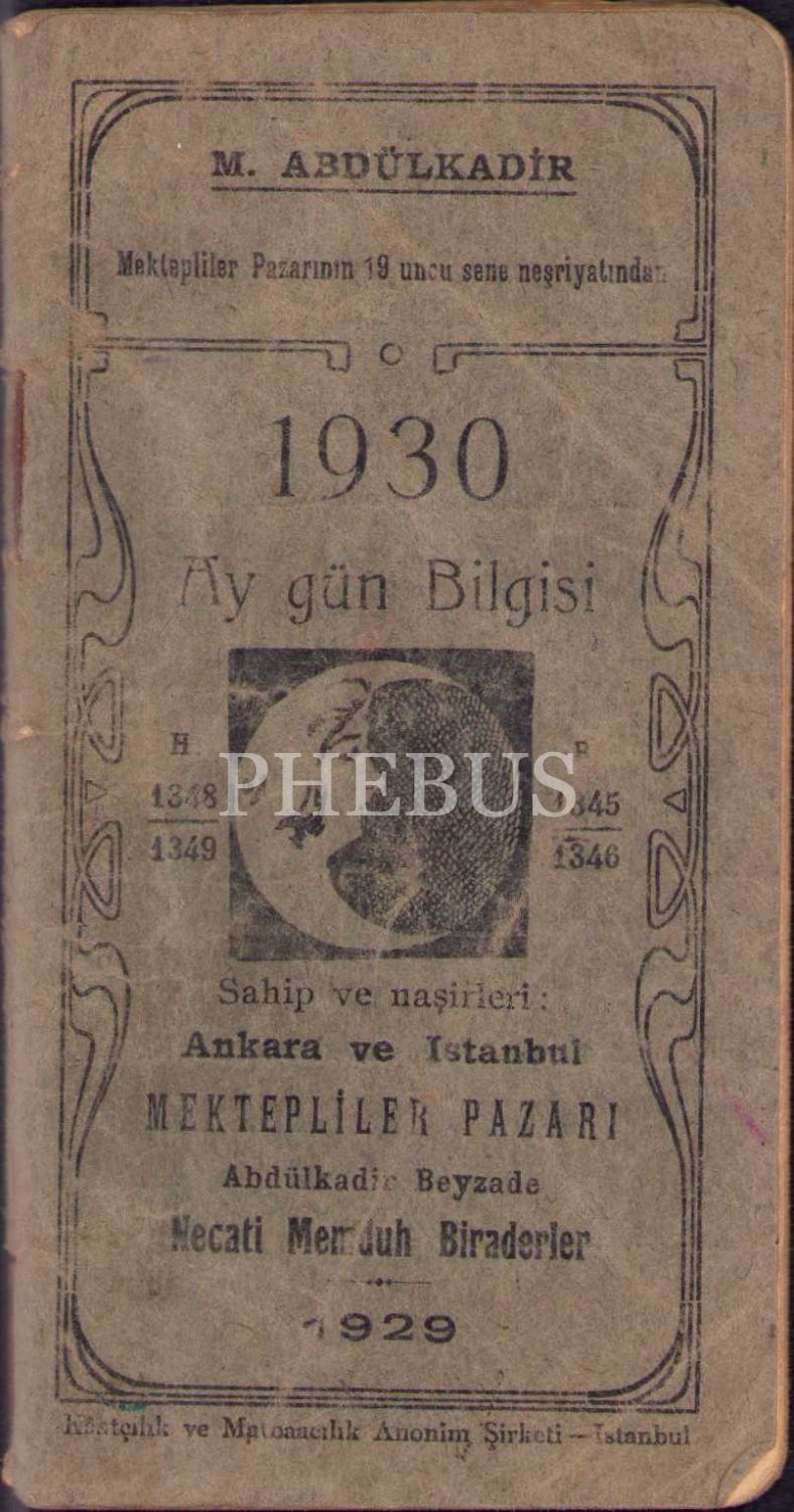 1930 Ay Gün Bilgisi, haz. M. Abdülkadir, Kâğıtçılık ve Matbaacılık A.Ş., İstanbul 1929, 7x13 cm