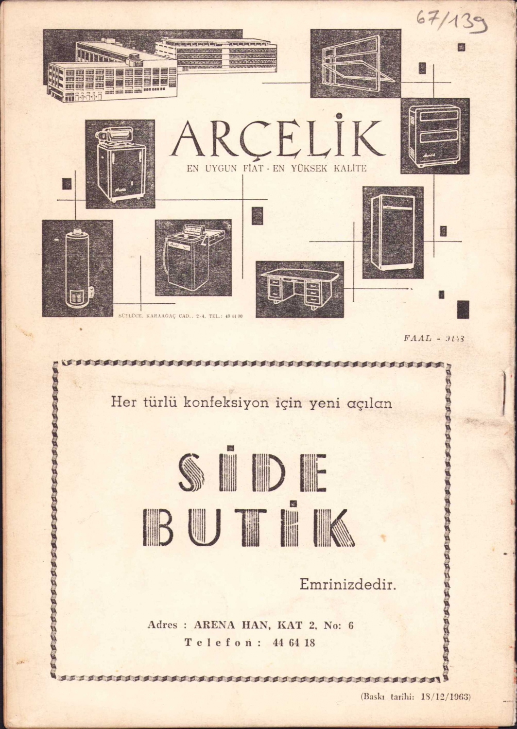 Arena Tiyatrosu broşür, Arçelik reklamlı