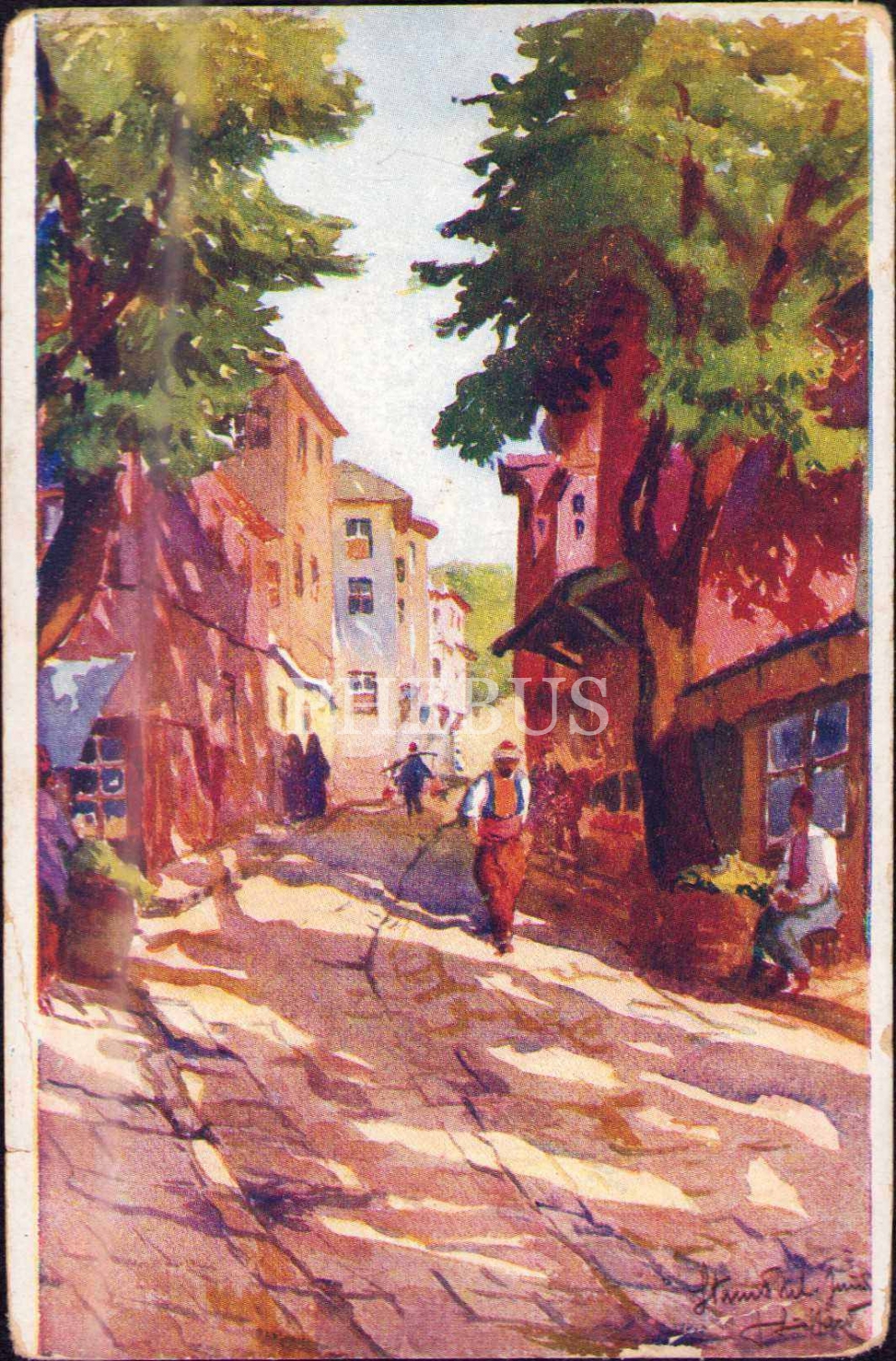 İstanbul´da bir sokak, Constantinople, Paris baskı, alt köşesi kırık haliyle