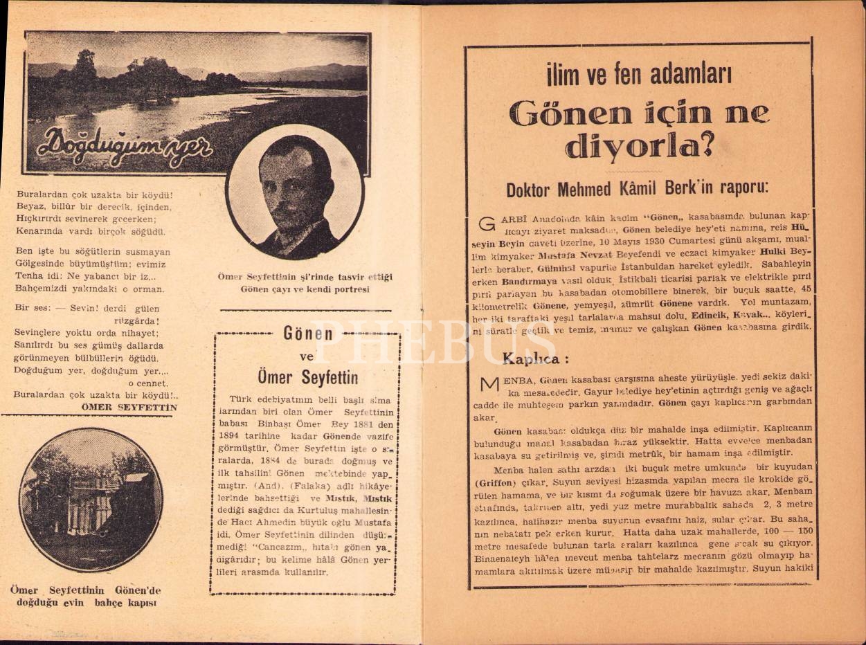 "Bandırmanın yanında Zümrüt Bir Köşe" Gönen Kaplıcaları hakkında kitapçık, 16 s., Vakıt Basımevi, İstanbul, 14x20 cm
