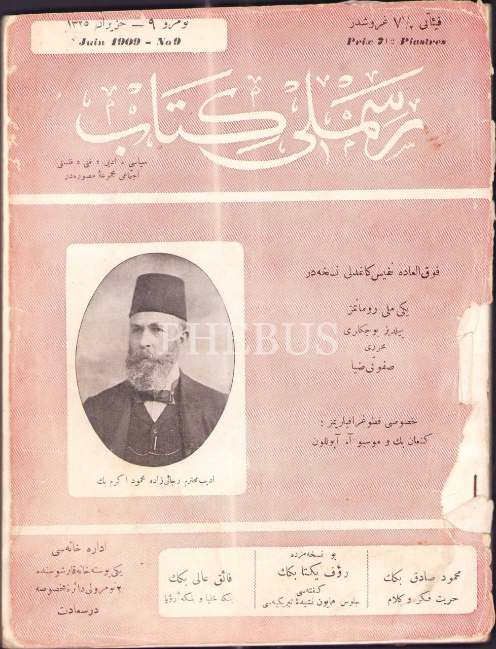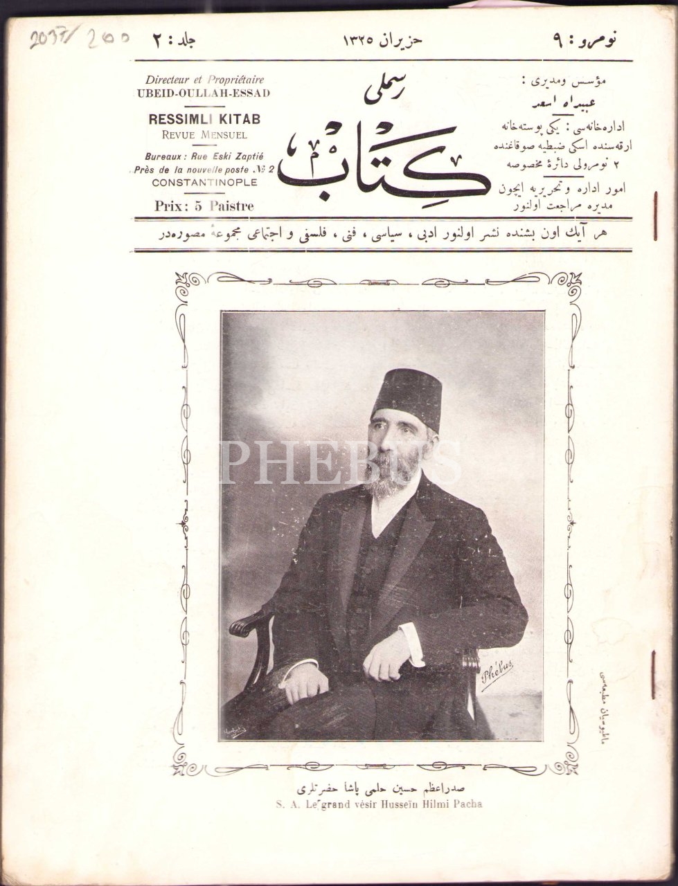 "Edebi, siyasi, fenni, felsefi ve ictimai" dergi Resimli Kitab´ın Haziran 1325 tarihli 9. sayısı,18x24 cm, kapağı ayrık haliyle