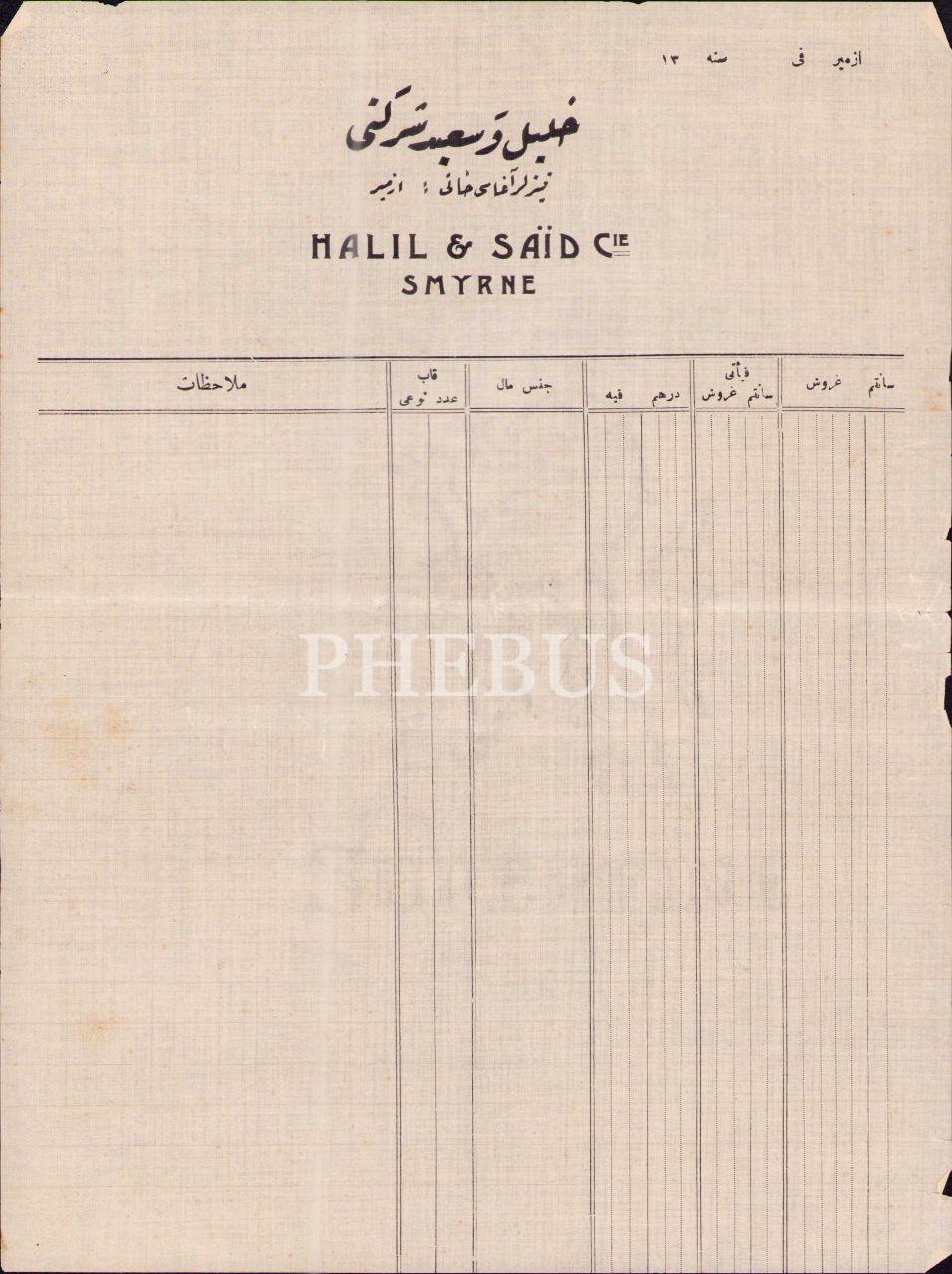 Halil ve Said Şirketi´ne ait boş fatura, Smyrne [İzmir] 1300´lü yıllar, 21x28 cm