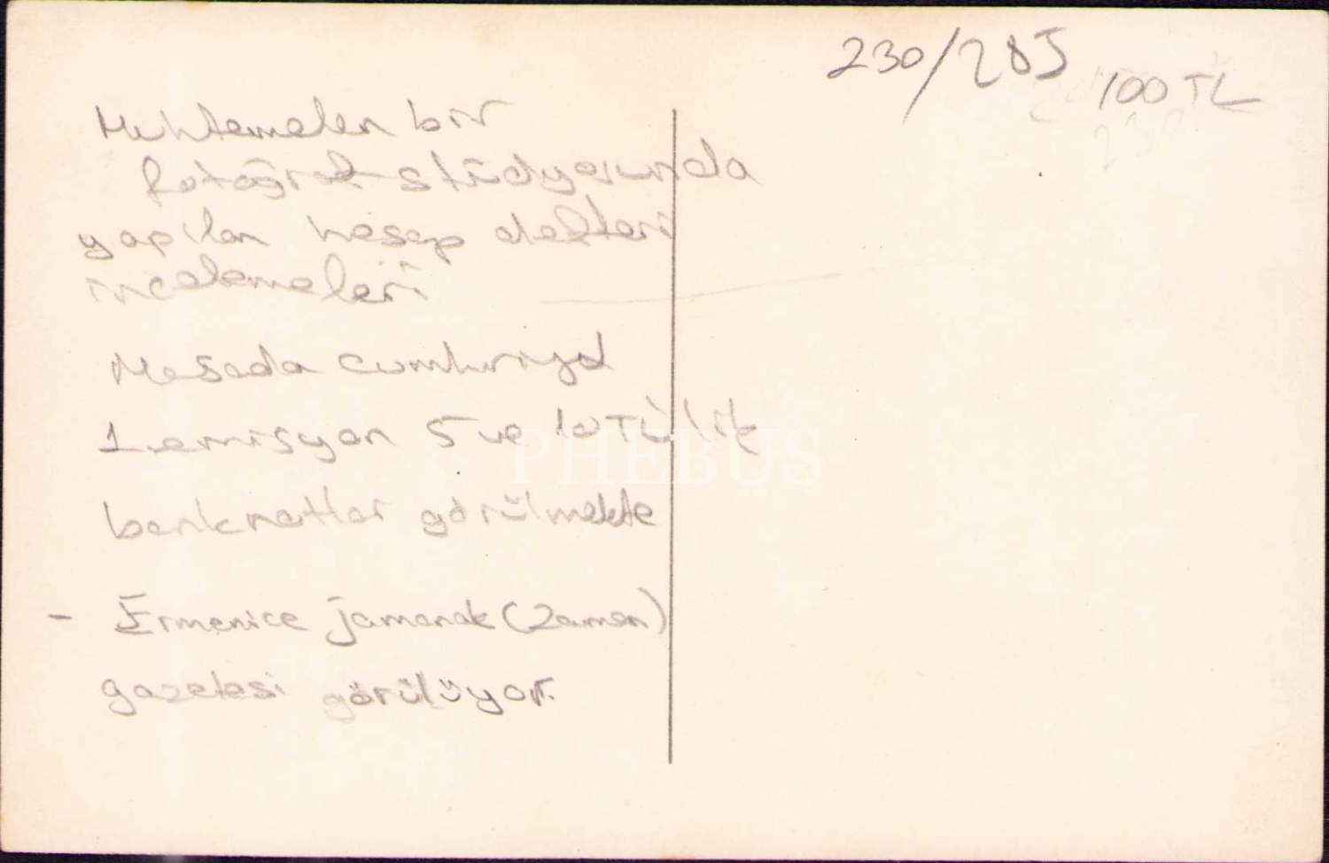 Ermenice Jamanak gazetesinin bulunduğu masada hesap incelemeleri yapılırken