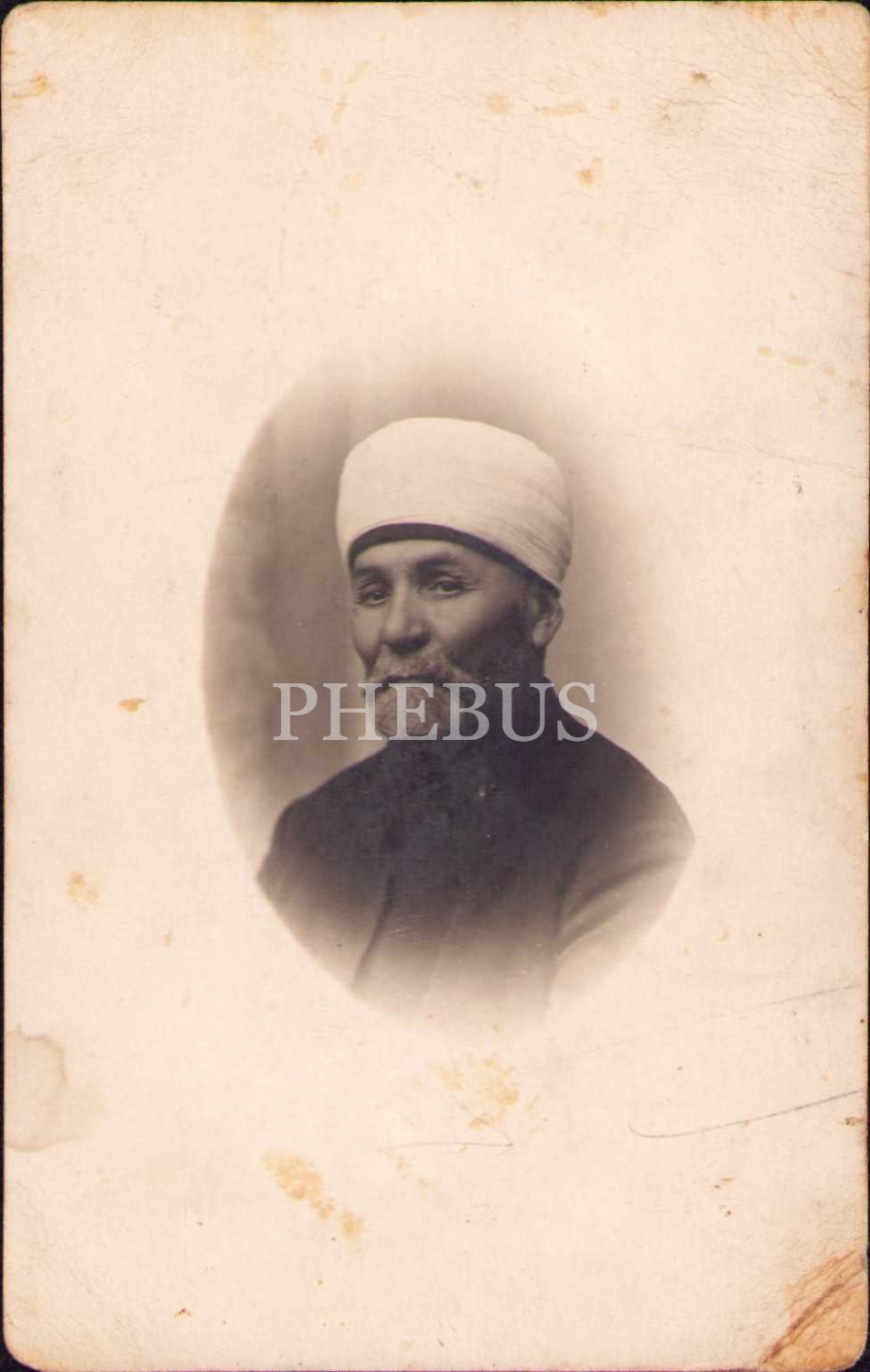 Din adamının Osmanlıca ithaflı hatıra fotoğrafı, alt köşesi kırık haliyle