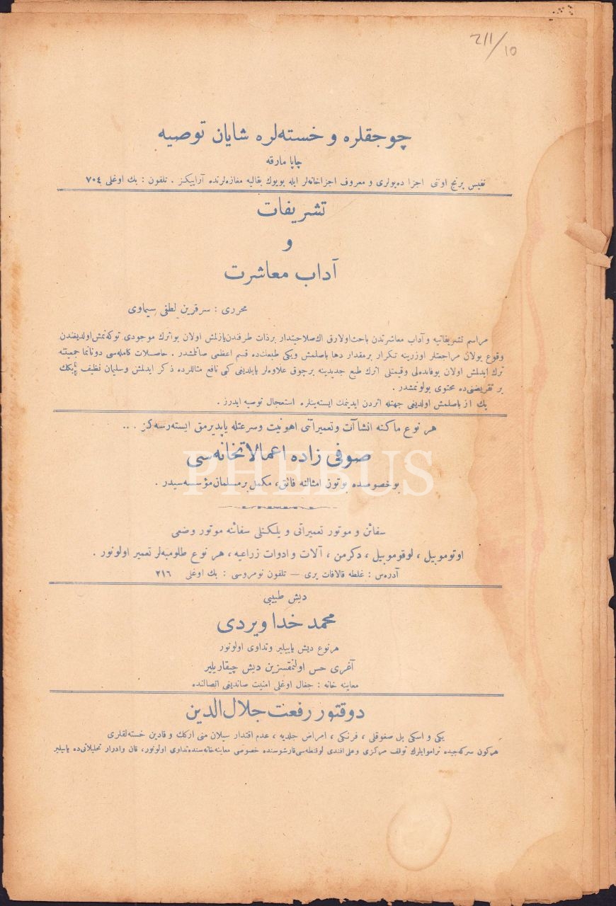 Filistin cephesi, Trablusgarb başarısı, tayyareciliğimize dair gelişmeler ve Garb cephesindeki Alman süvarilere ait fotoğraflar içermektedir.