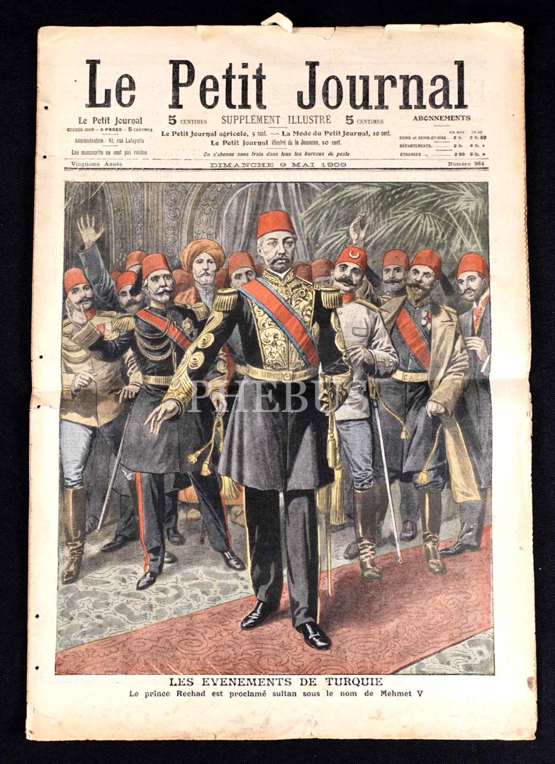 Le Petit Journal gazetesinin Sultan Mehmed Reşad kapaklı sayısı, 9 Mayıs 1909, 31x45 cm
