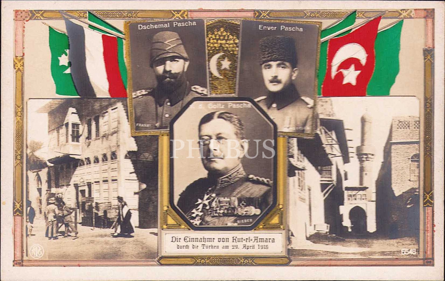 Enver, Cemal ve Goltz paşaların yer aldığı Kûtu´l-Amare kartpostalı
