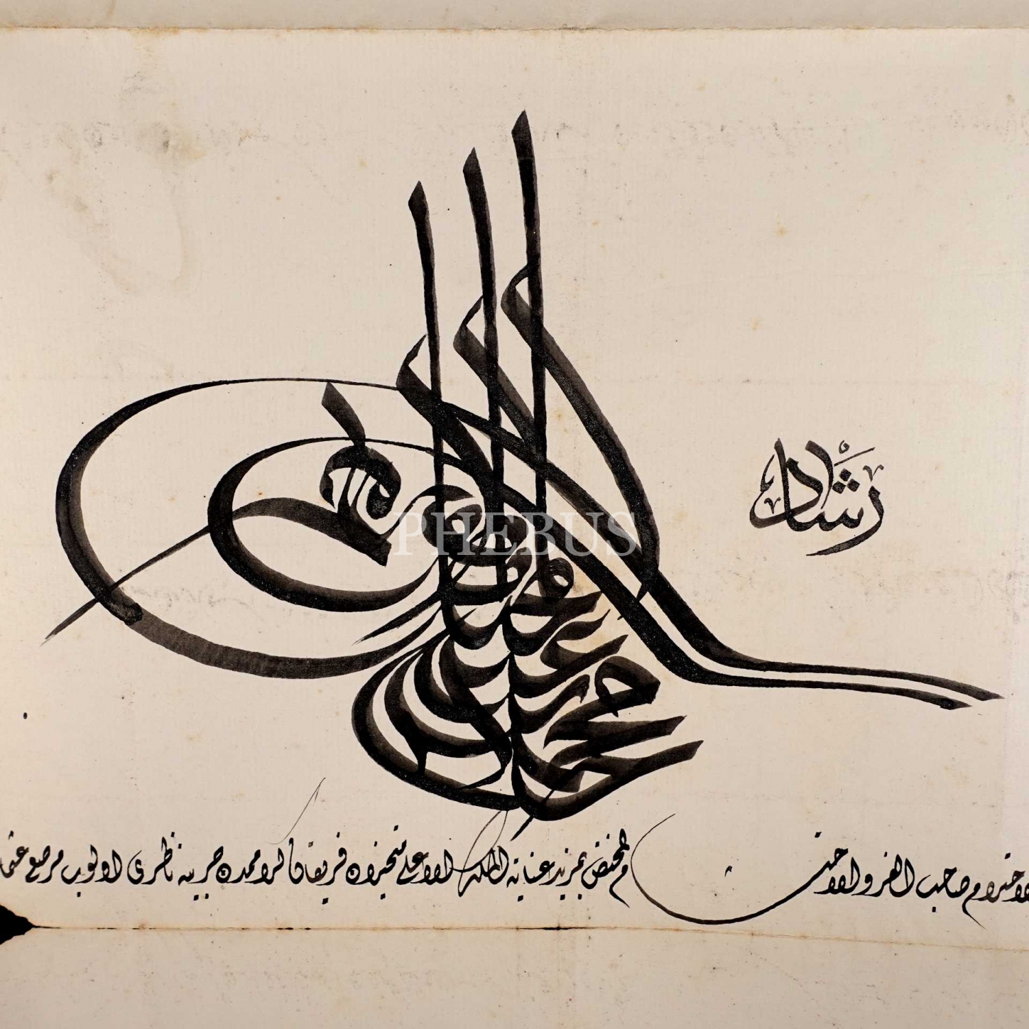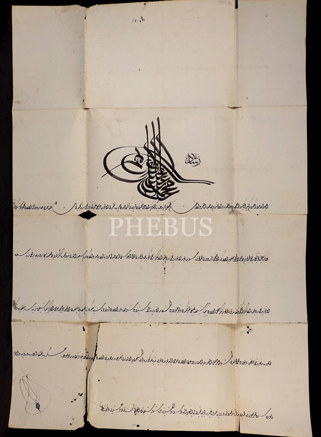 Kolağası Antalyalı Said Efendi´nin binbaşılığa tayin edildiğine dair Sultan Reşad tuğralı ve 1328 tarihli terfi beratı, 56x83 cm