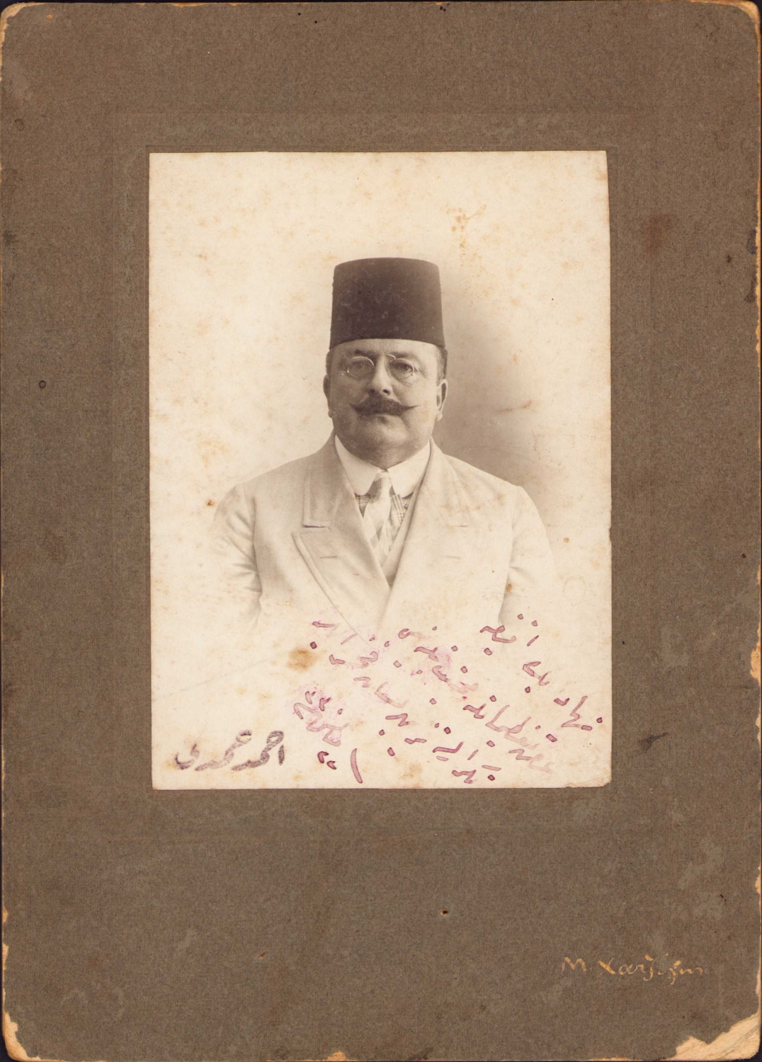 Osmanlı Ahmed Hamdi isimli beyefendiye ait kabin fotoğraf, 1330 tarihli, ithaflı