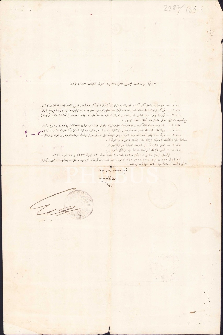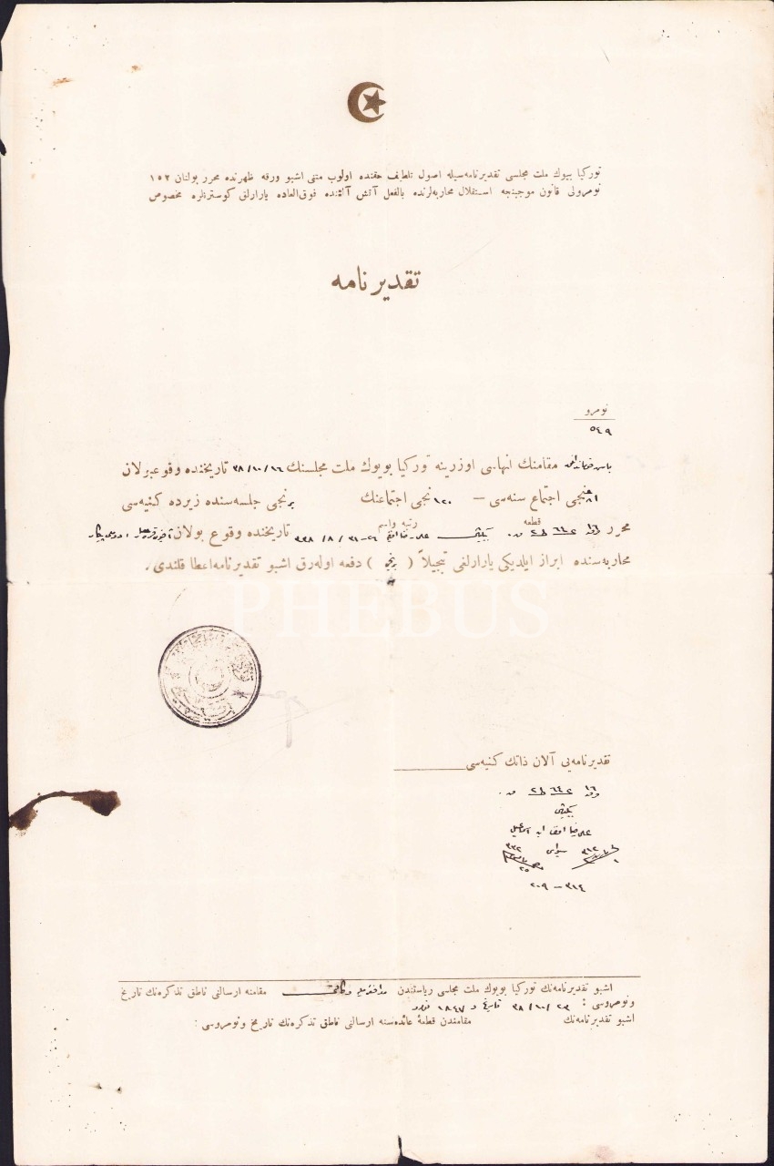 Afyonkarahisar-Dumlupınar Muharebesi´nde gösterdiği yararlıktan ötürü Binbaşı Ali Rıza Efendi´ye verilen 1339 tarihli, Atatürk imzalı, takdirname ve ilişkili belgeler