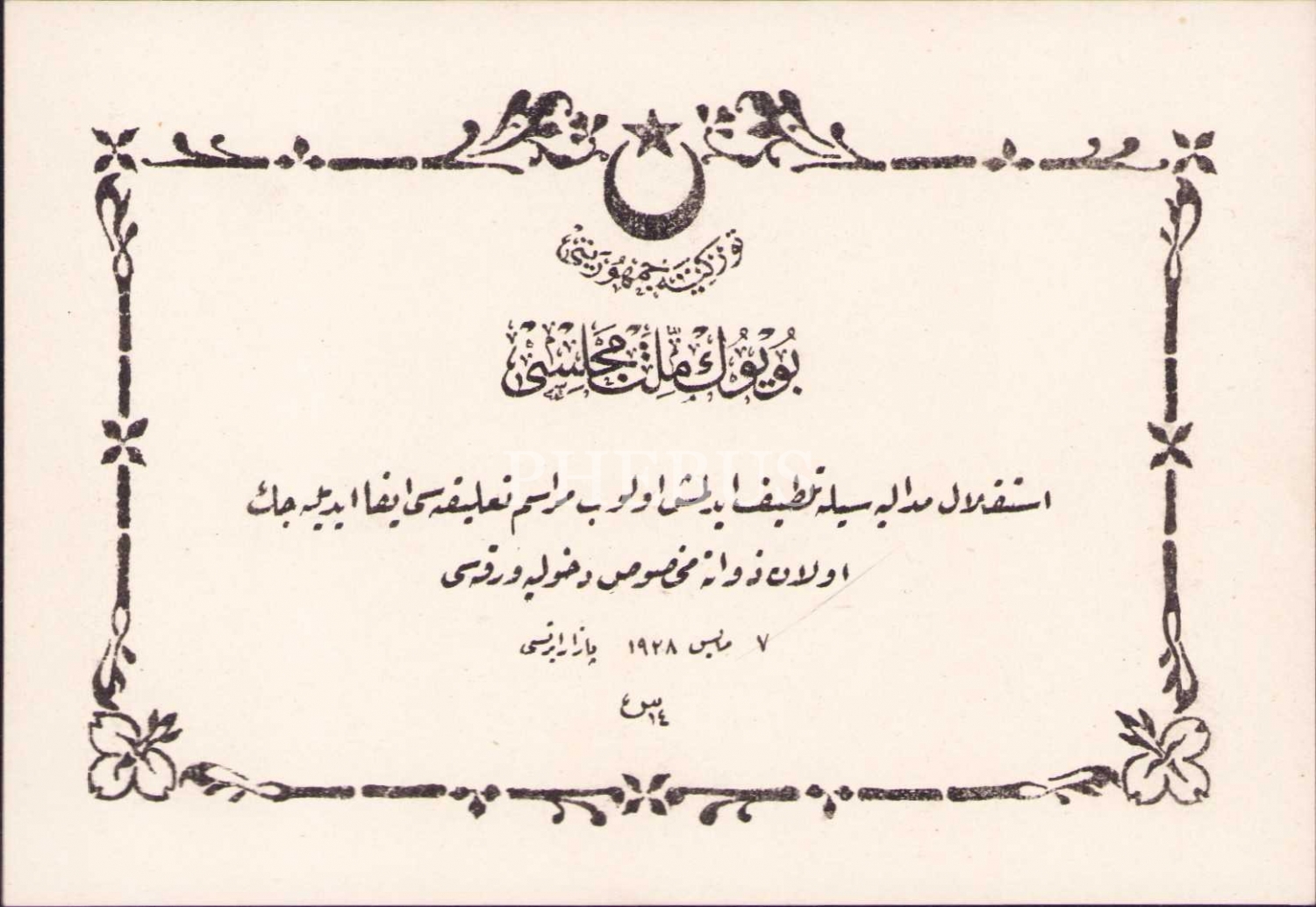 1928 tarihli İstiklâl madalyası törenine giriş kartı, 9x13 cm