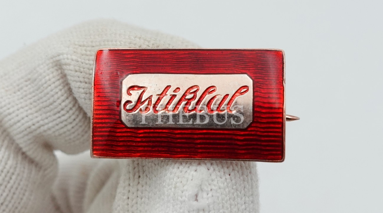 "İstiklal" yazılı mineli rozet, 1.5x2.5 cm